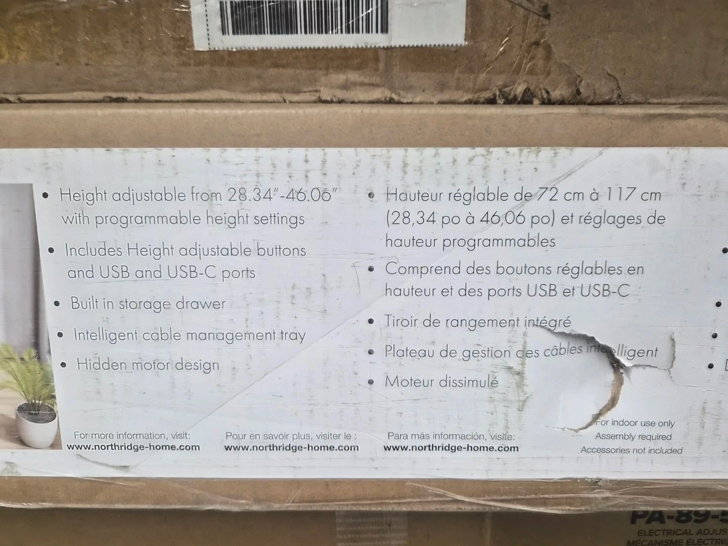 Selling a height-adjustable standing desk from Northridge Home! The height can be adjusted from 28.34" to 46.06" with programmable height settings. It also includes height-adjustable buttons, USB and USB-C ports, a built-in storage drawer, and an intelligent cable management tray. The motor is hidden for a clean look