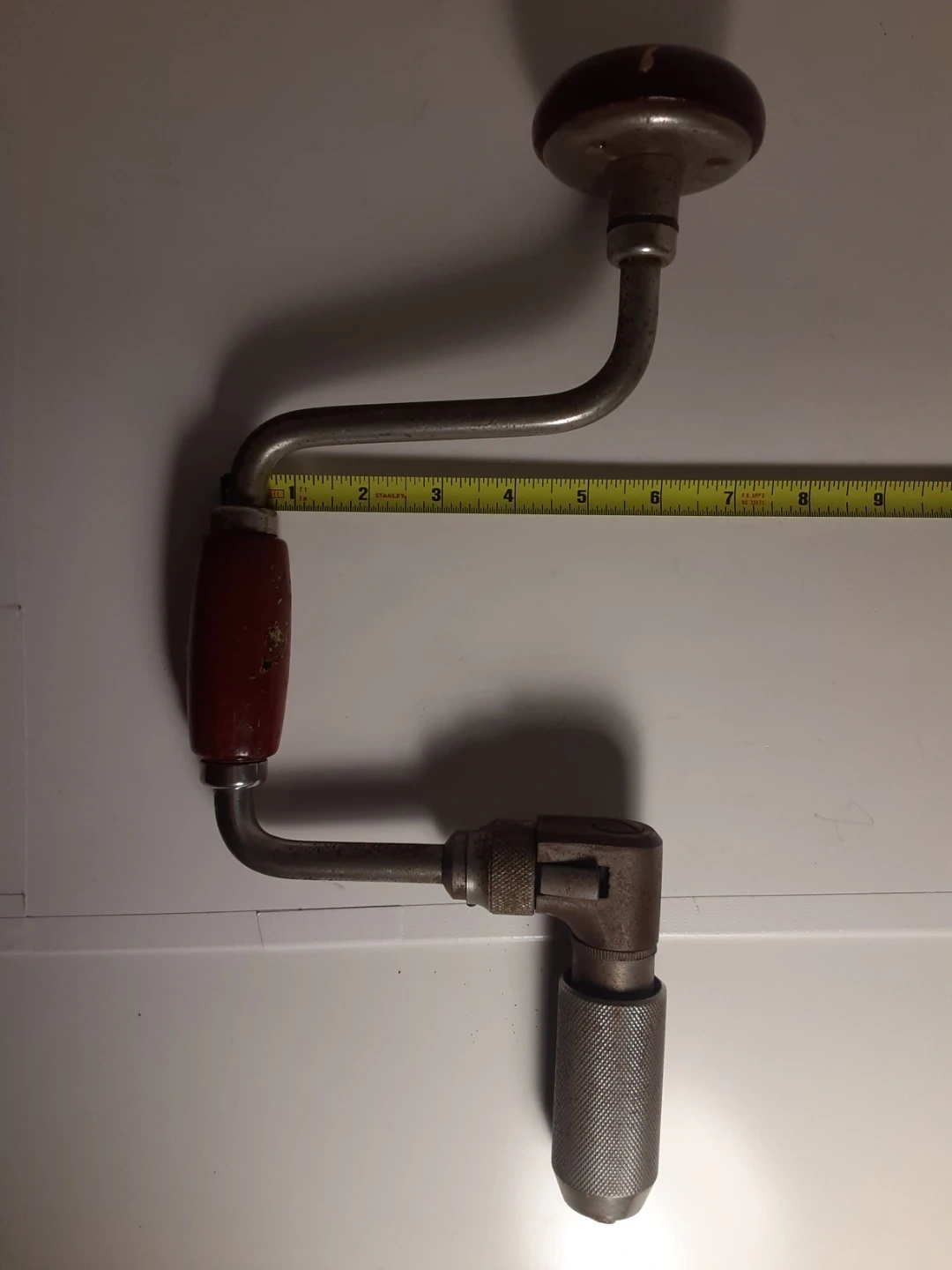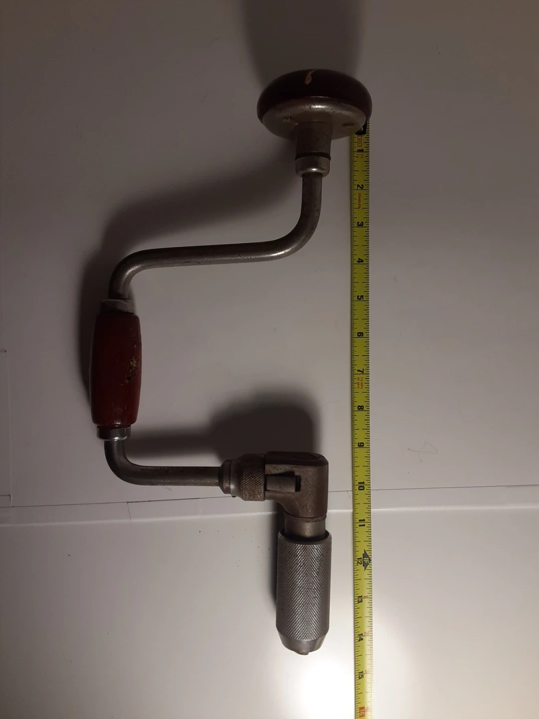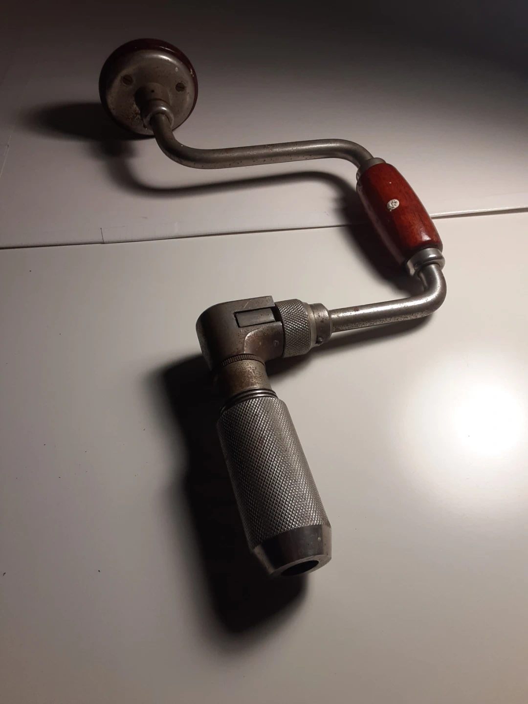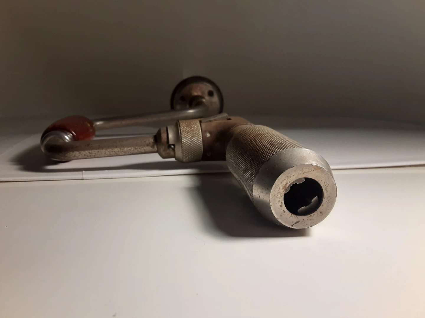 Vintage hand brace drill, showing signs of age/wear, surface rust and use. I have not used it but it seems to be in functional order after inspecting/briefly testing parts/functions.