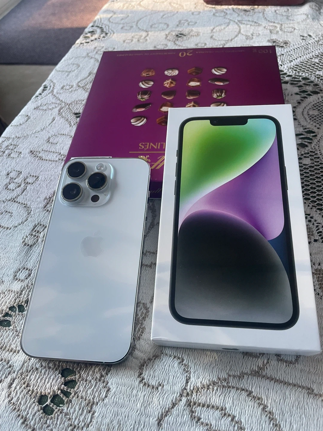 Selling a silver iPhone 14 Pro. It comes with the original box. 256 gbs. 86% battery. Unlocked.Great