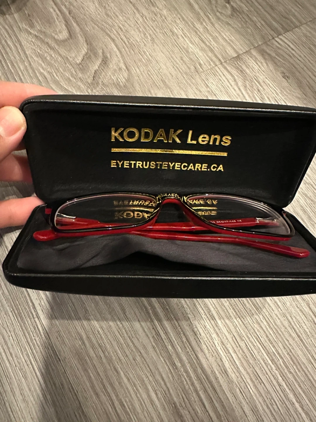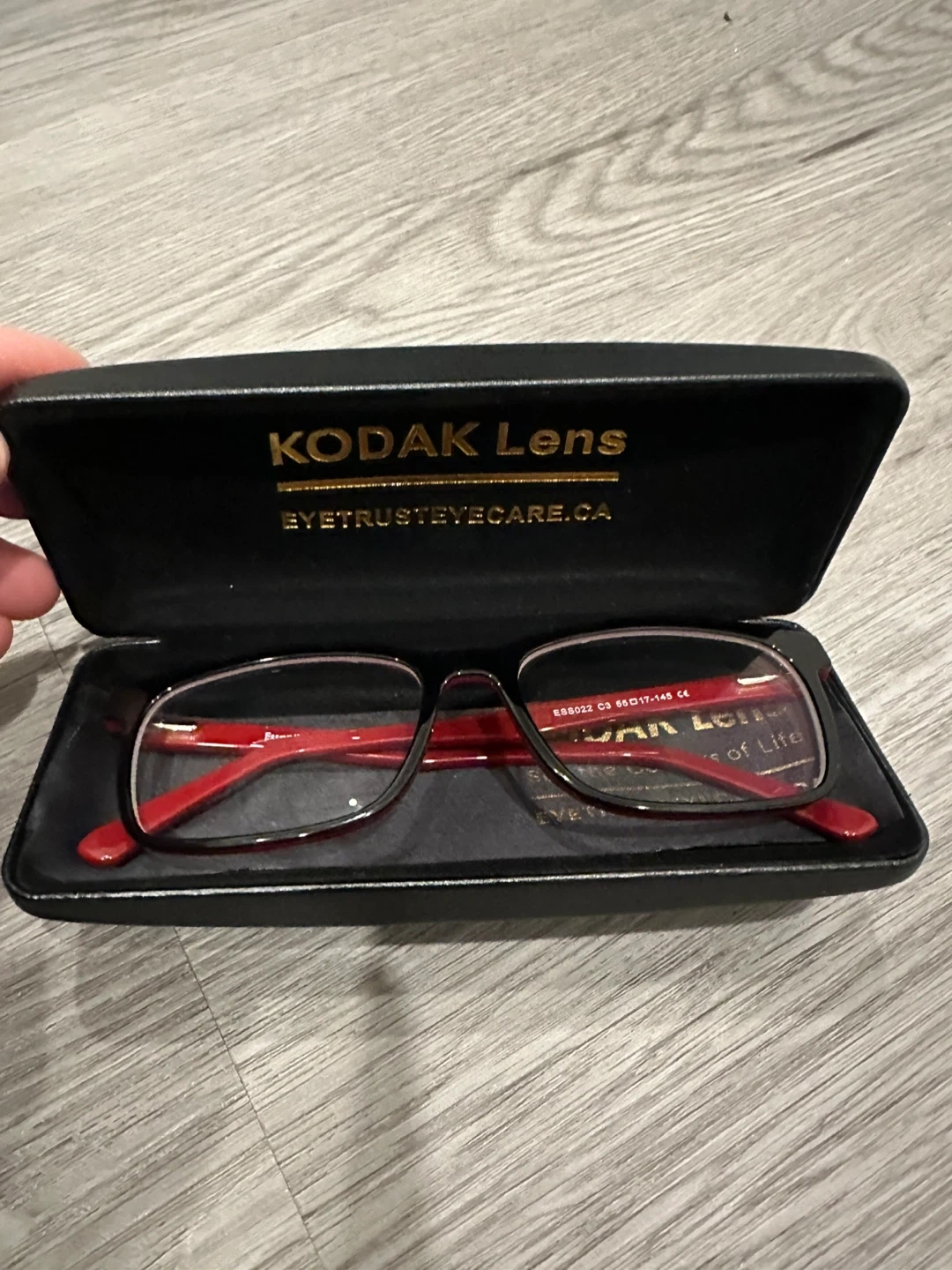 Selling a pair of Kodak eyeglasses. They come with a case for protection. The frames are a stylish red and black. Frame size: 55□17-145