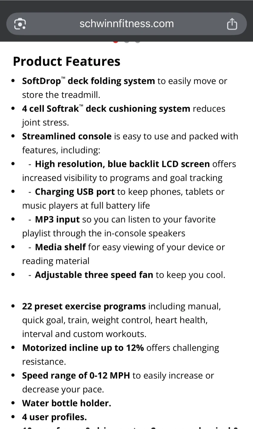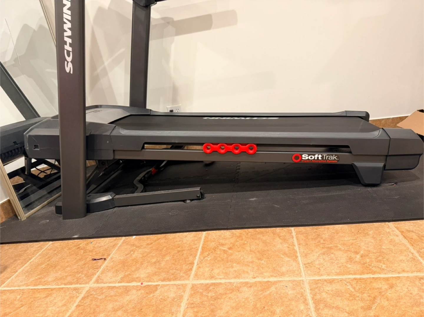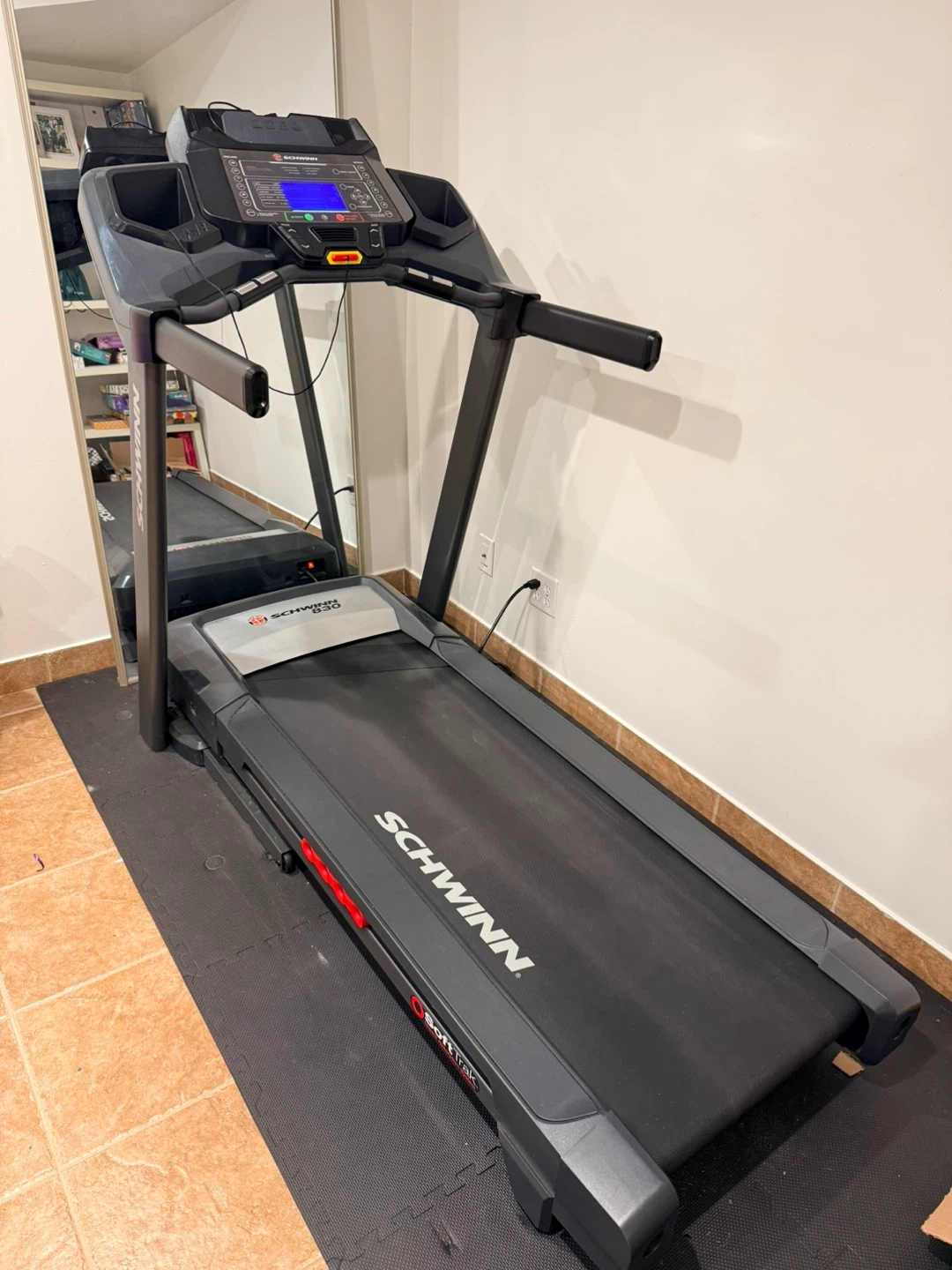 Selling a Schwinn 830 treadmill in great shape! It features a SoftDrop deck folding system for easy storage and a 4-cell Softrak deck cushioning system to reduce joint stress.