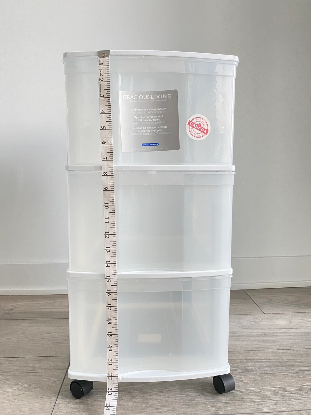 Selling set of 2 premium quality big stackable transparent drawers on wheels from Gracious Living. Proudly Made in Canada ๐จ๐ฆ!