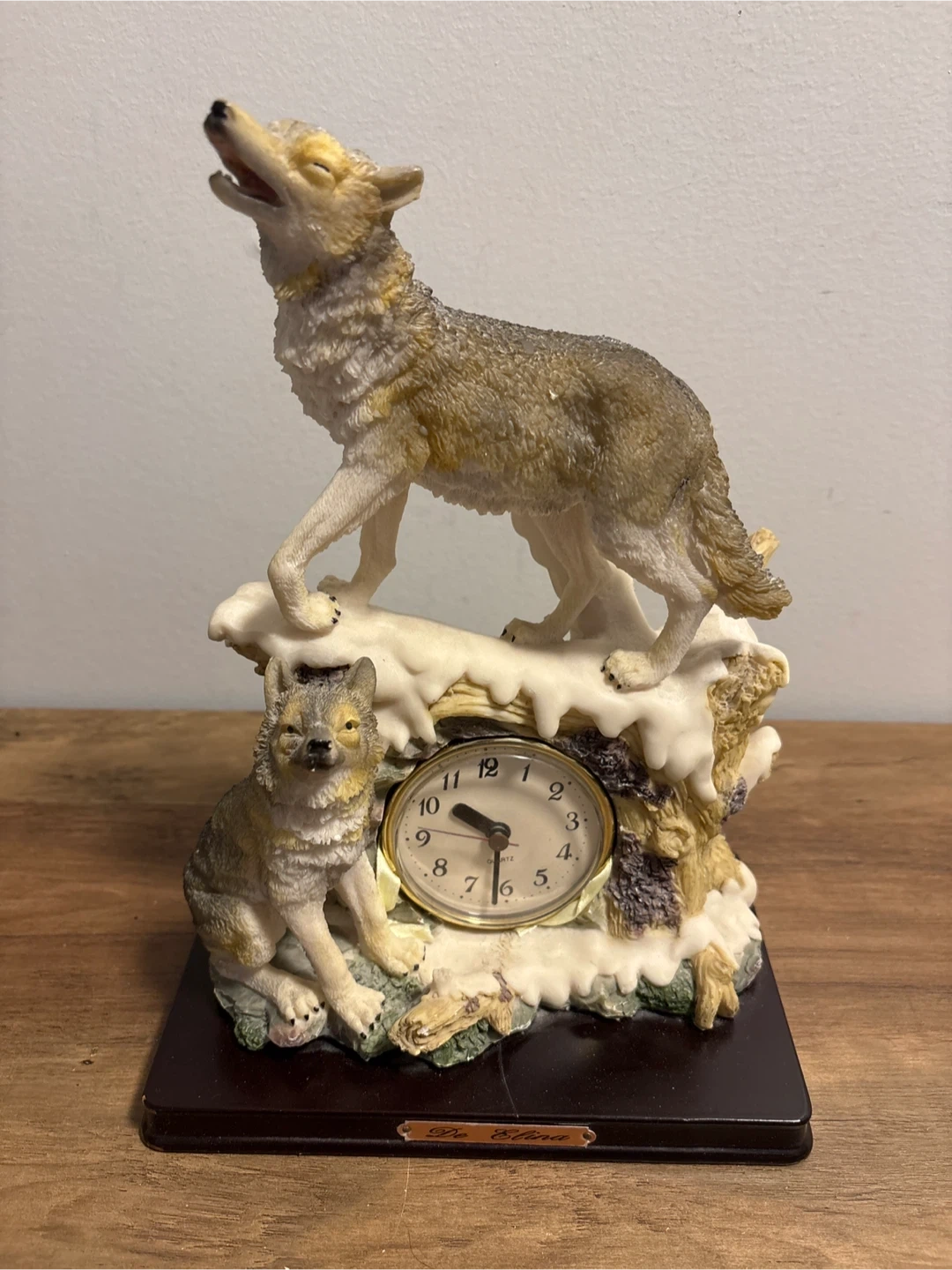 Vintage De Elina Wolf Clock. 8.8x5x12 inches