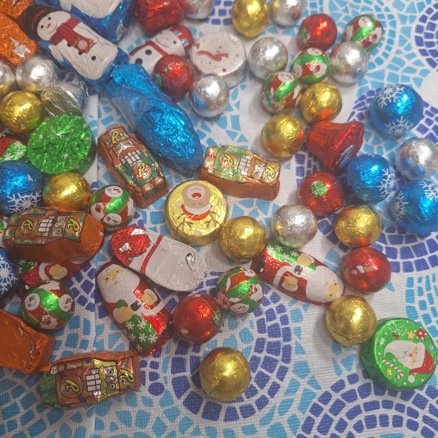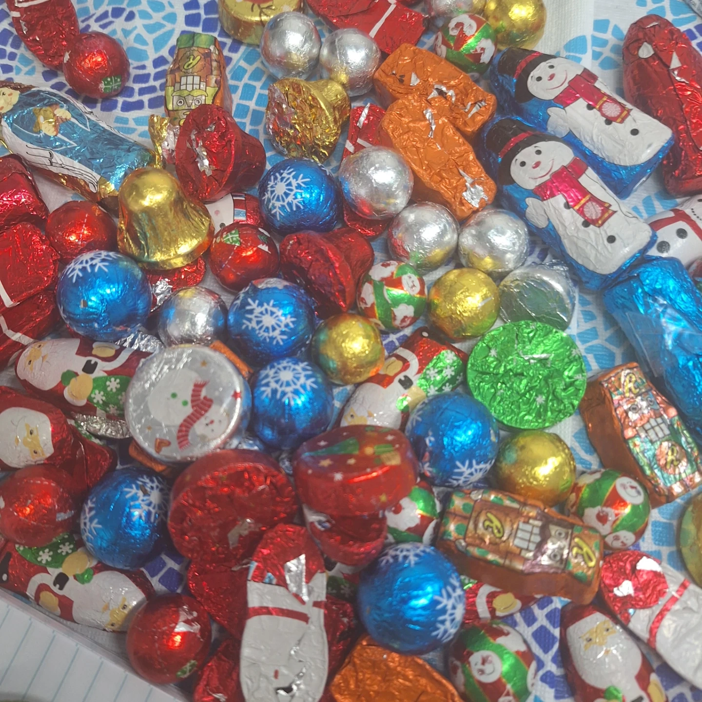 Indulge in a festive assortment of Christmas chocolates! This delightful mix includes various shapes and flavours, perfect for sharing or enjoying as a sweet treat during the holiday season. It's a delightful treasure trove of holiday cheer, and if the ad is up, the chocolates are ready for a new home!