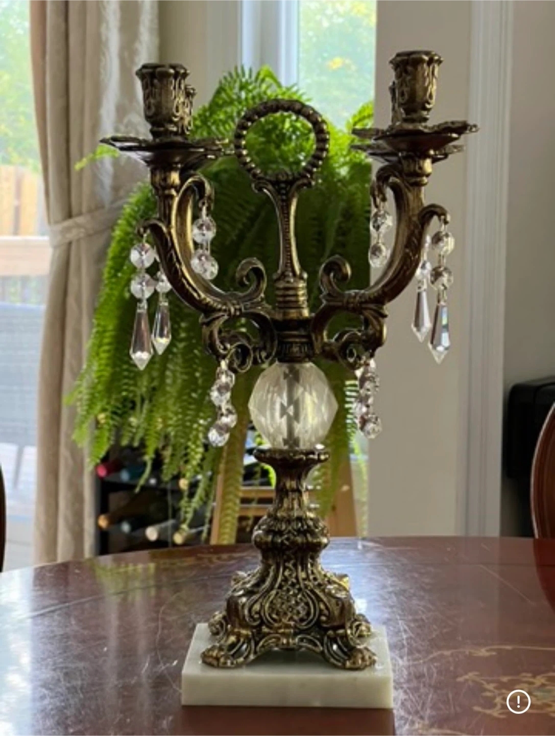 Selling a beautiful vintage candelabra! It features ornate detailing and crystal accents. It's perfect for adding a touch of elegance to any room in your home