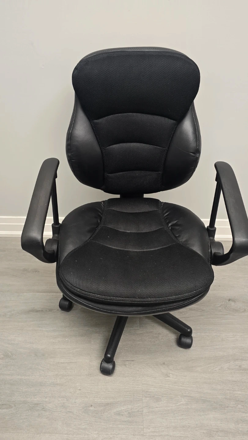 Selling a comfortable black office chair! It's in good condition and ready for a new workspace. Perfect for working from home or for students