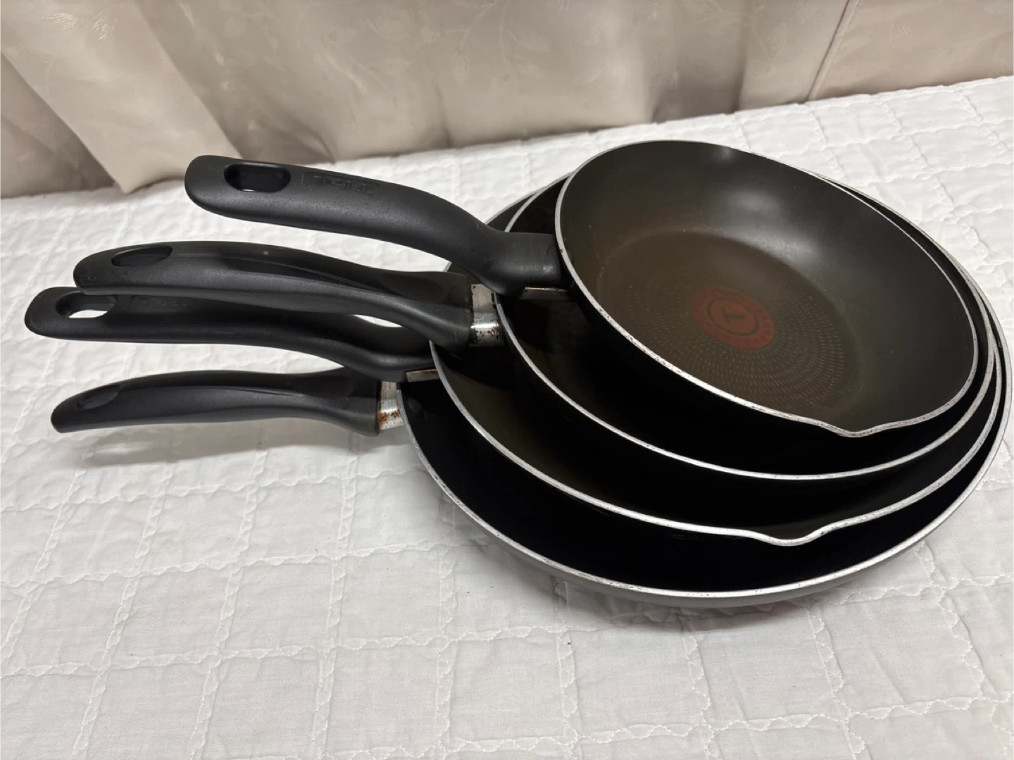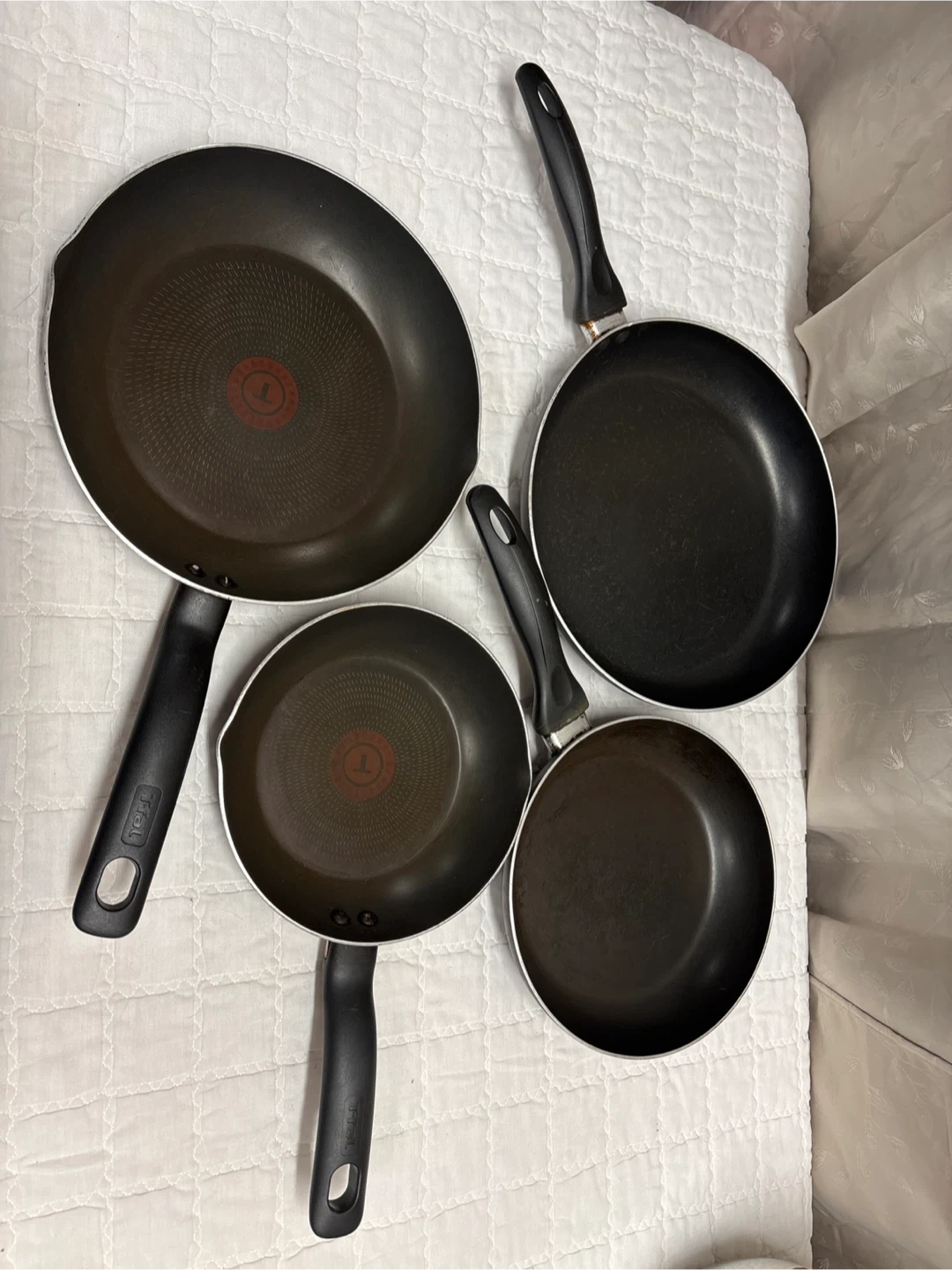 Selling a set of four T-fal nonstick frying pans. They're in used condition but still have plenty of life left! Great for all your cooking needs