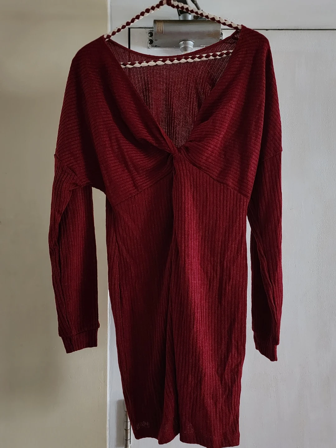 Beautiful Twist Back Burgundy Long Sleeve Rib Knit Dress * NEW