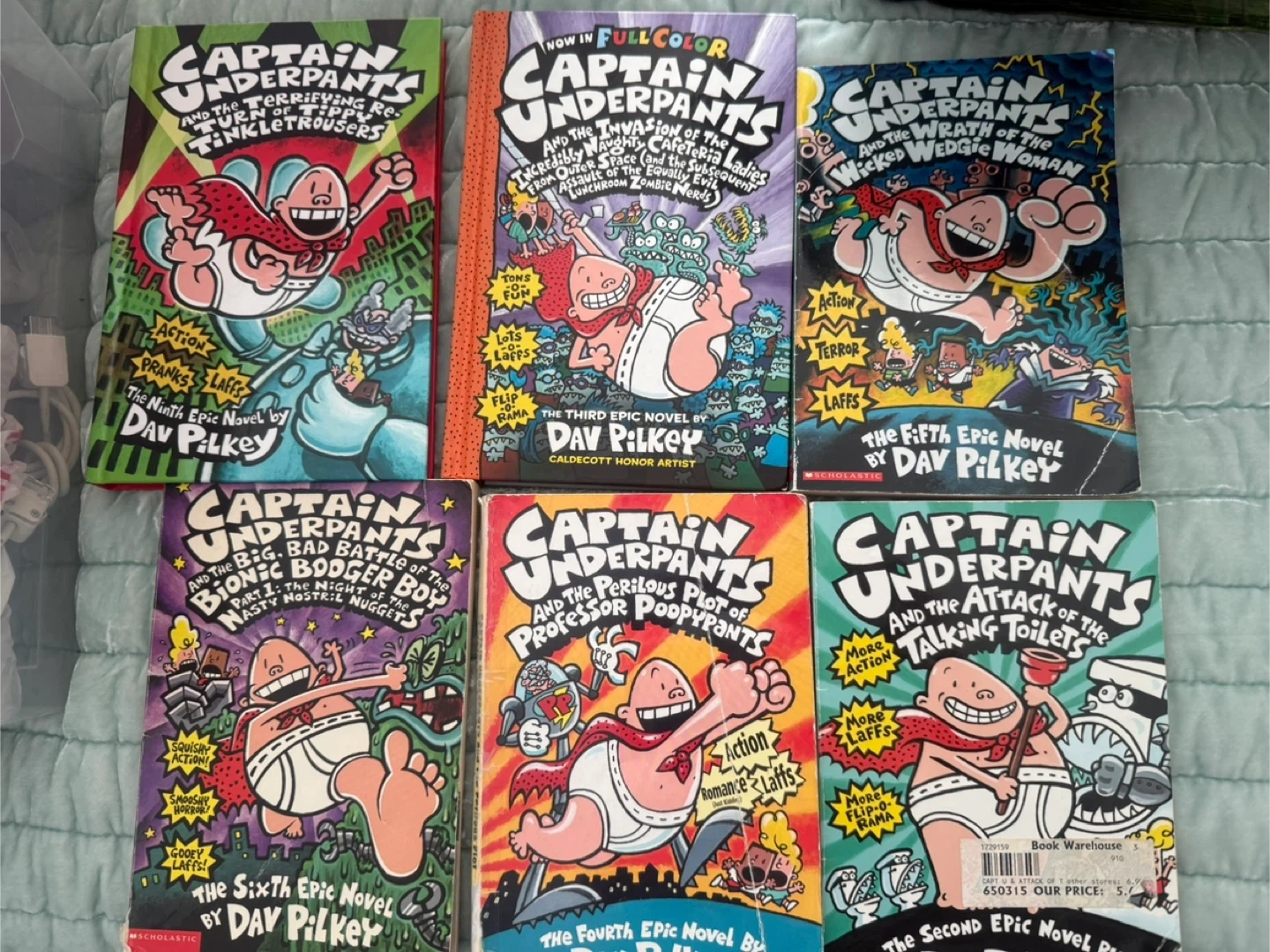 Selling a set of Captain Underpants books by Dav Pilkey! These books are full of action, pranks, and lots of laughs. Great for kids who love a bit of silly humour and adventure. Titles include: