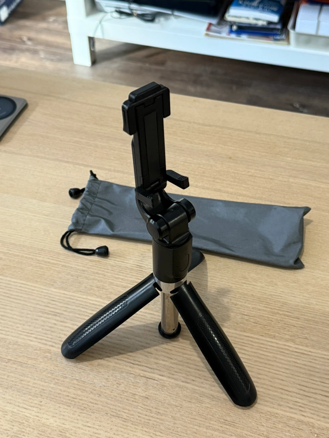 Selling a handy black extendable phone tripod! It comes with its own carrying bag, making it super easy to take on the go. Perfect for taking photos or videos, whether you're out exploring or just need a stable base at home