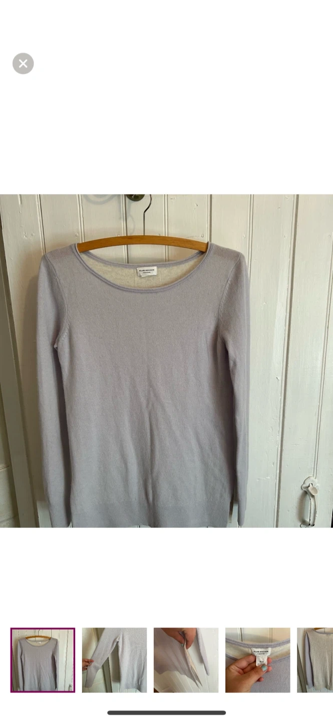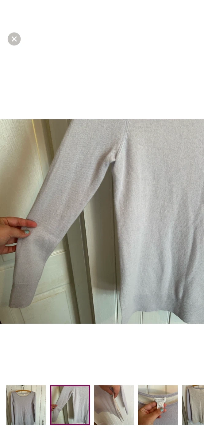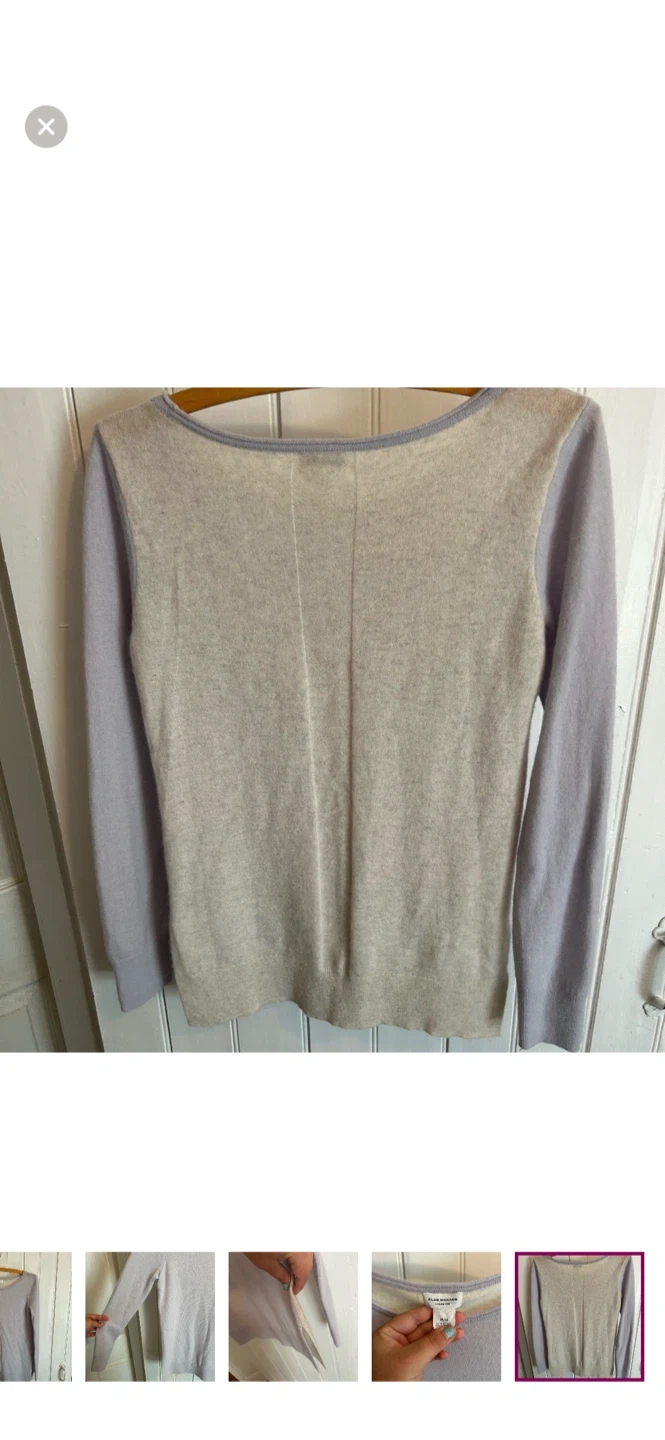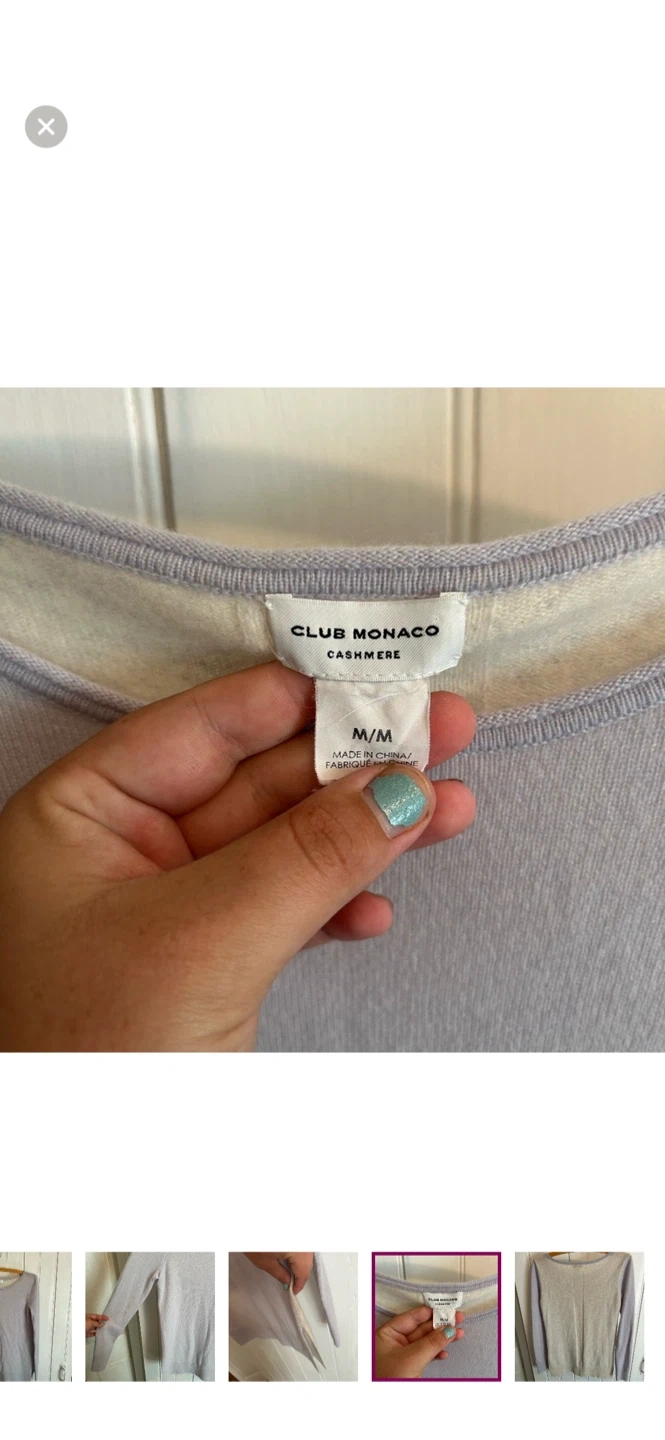 Club Monaco brand cashmere line. Super soft knit sweater with side cuts. Light blue with off white back. Size medium. Brand new condition