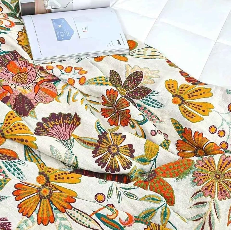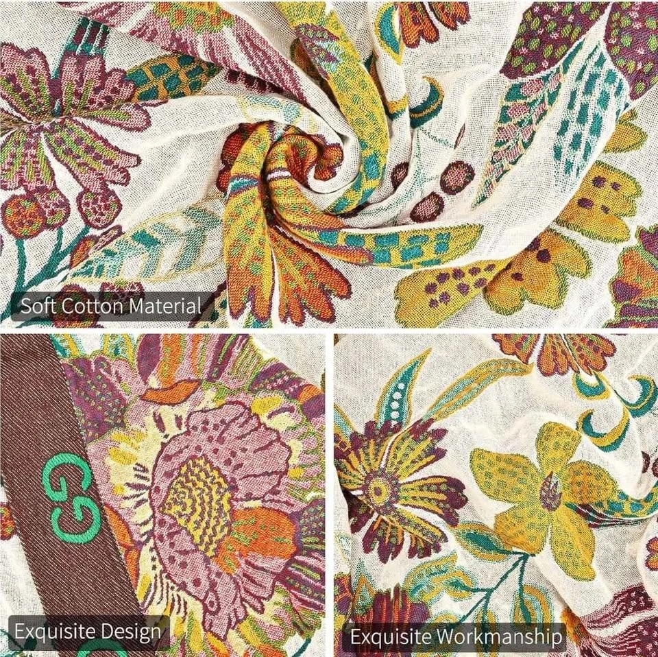 Watbro Boho Throw Blanket for Bed - 100% Cotton Ultra Soft Luxury Throw Rustic Fall Quilt, Floral Printed Farmhouse Decor Bed Blankets, 60"×80" All Season Rustic Throw for Living Room Sofa Couch Chair