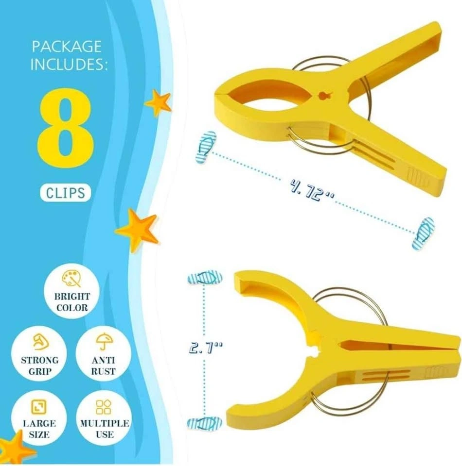 8 piece Pack towel clips , Beach Clips ( Brand new- Sealed packa