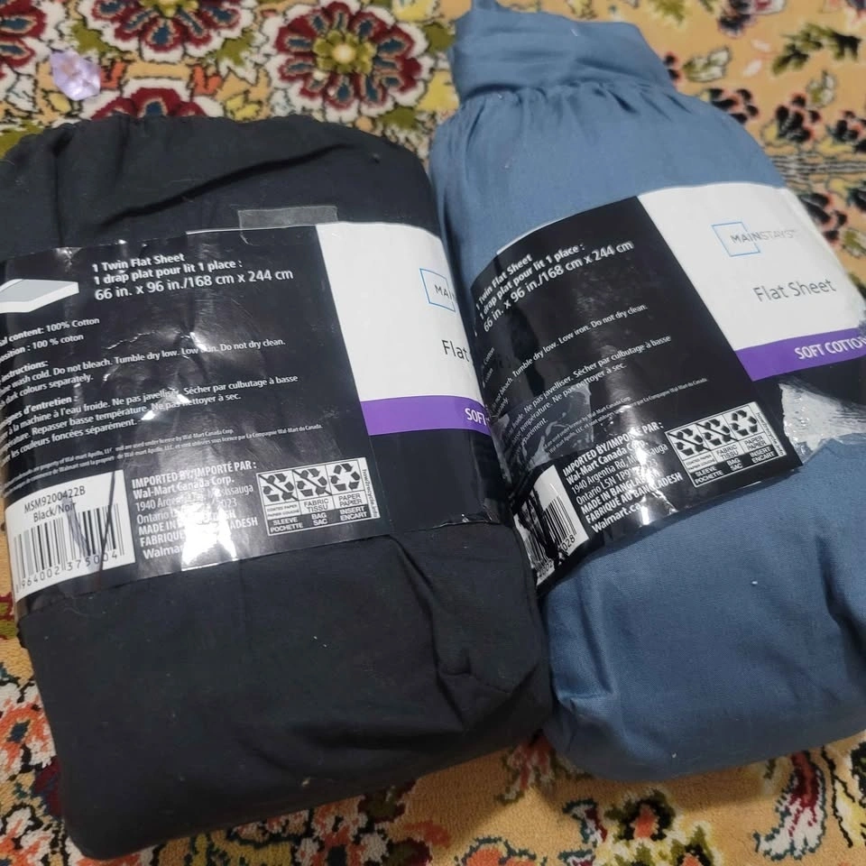 2 Twin size ( Single ) flat sheets, one blue one black, both for $5