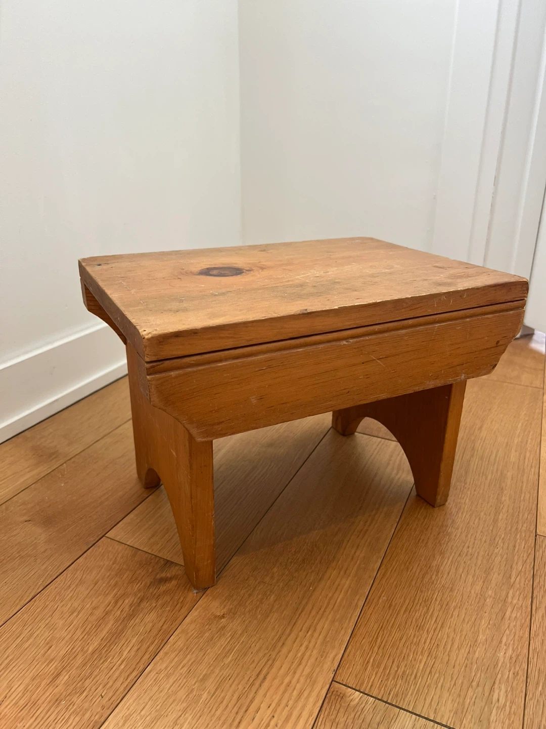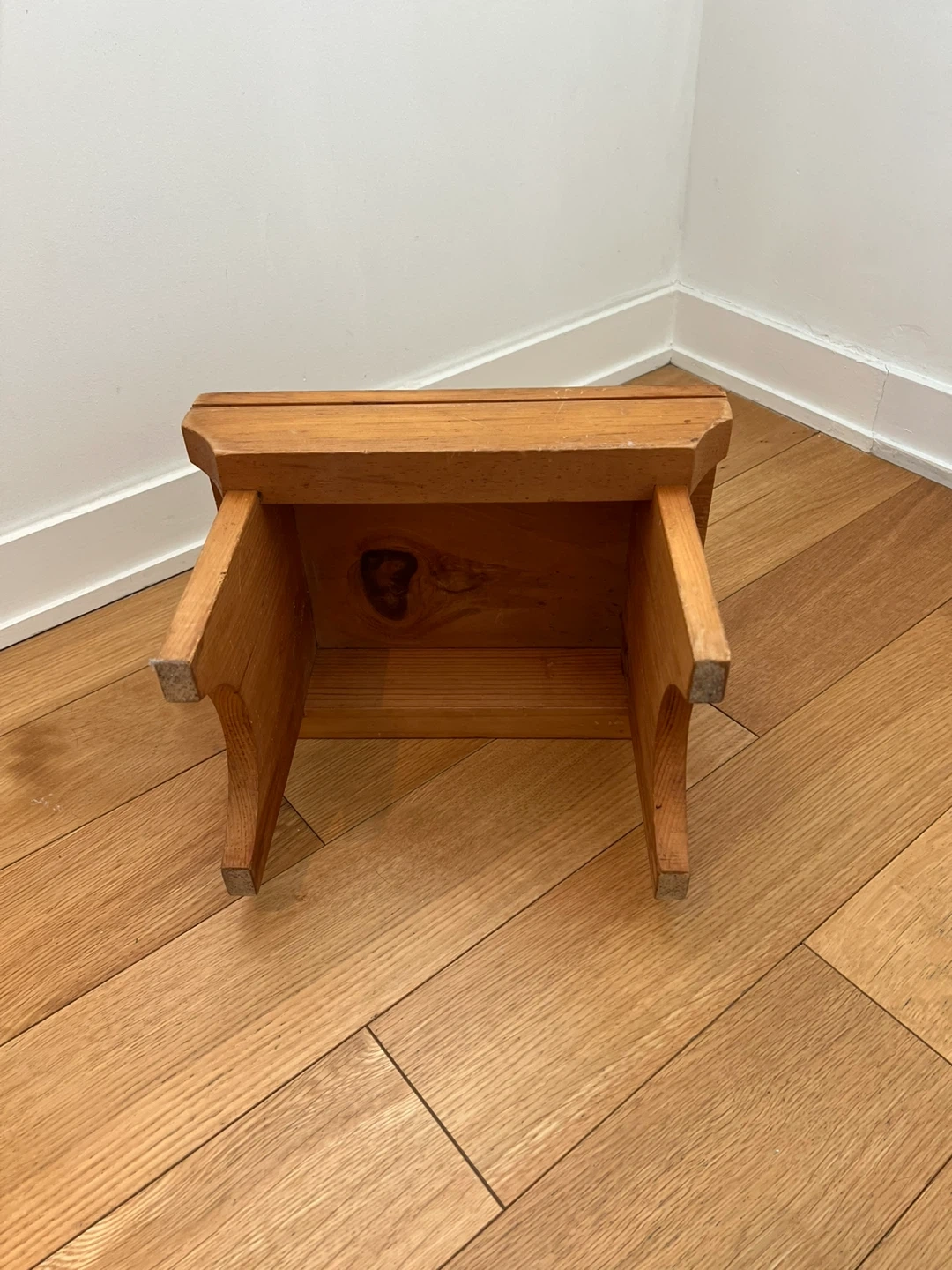 Built of solid wood, handmade. Some signs of use (see pics). Would clean up nicely with sanding.