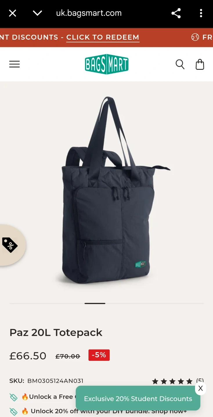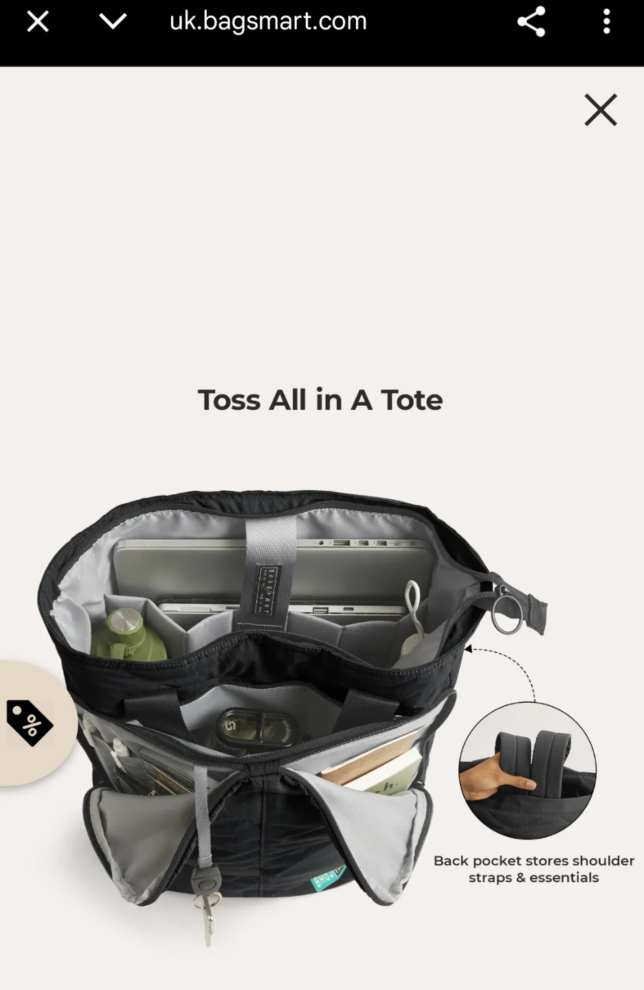 Selling a BAGSMART Paz 20L Totepack in excellent condition! This versatile bag is perfect for carrying your laptop and other essentials.