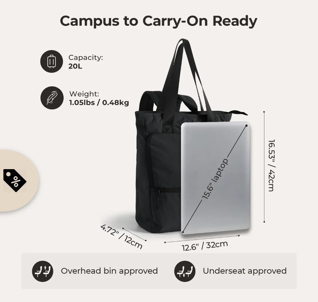 It's designed to be campus-to-carry-on ready, making it ideal for students and travellers alike.