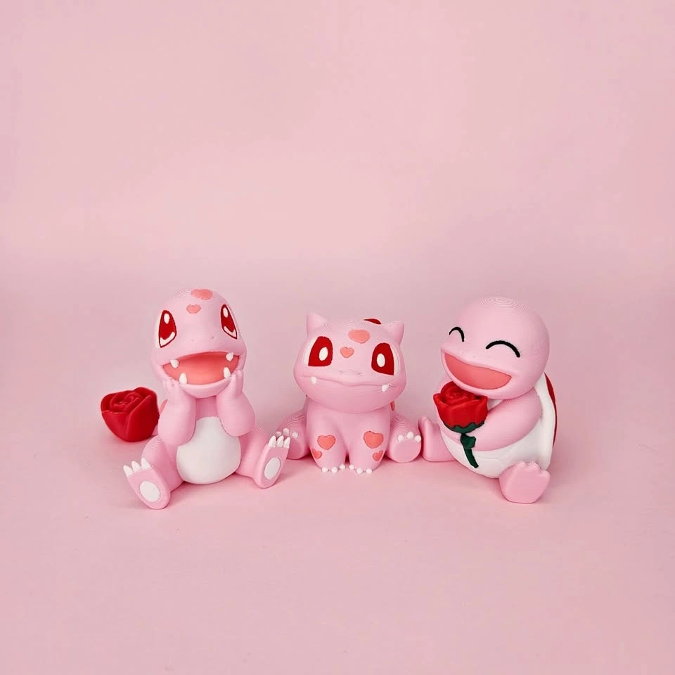 Rose themed Bulbasaur, Squirtle, and Charmander are all 3D printed in color!