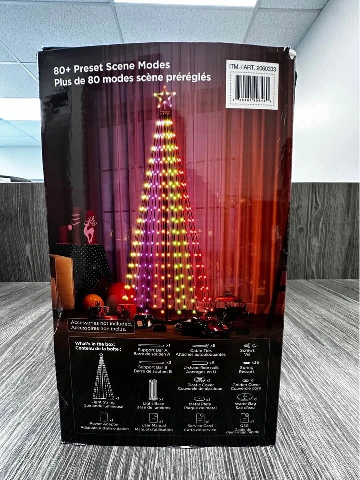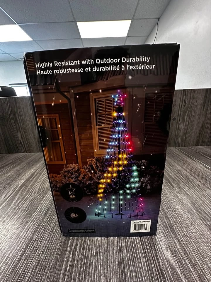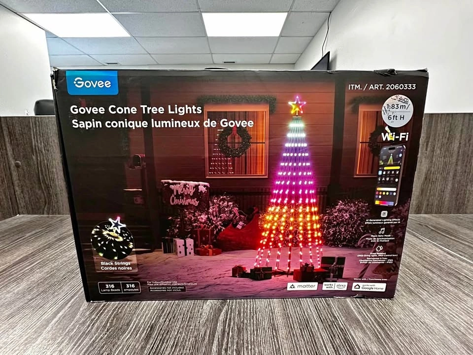 Govee cone tree lighting set, approx. 6 ft tall, with Wi-Fi + app control and 80+ preset lighting modes. Works with Govee Home app and integrates with Alexa/Google Home. Perfect for indoor or outdoor holiday lighting, events, parties, or seasonal decoration.