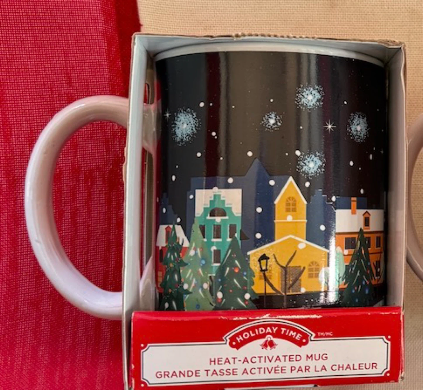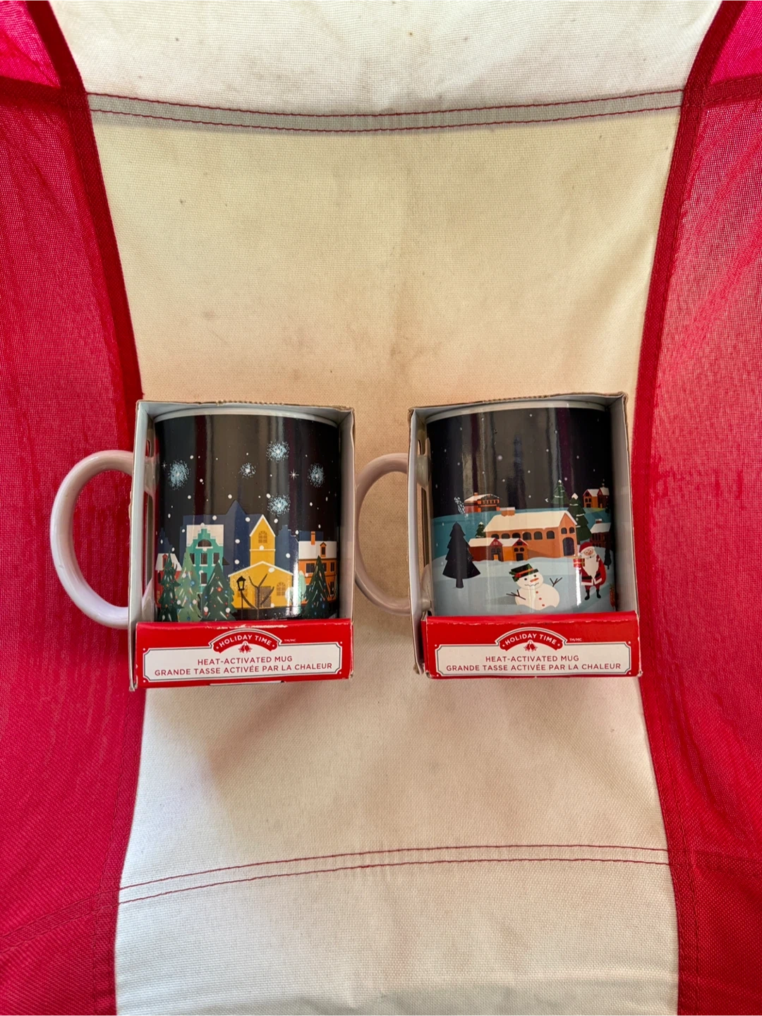 I'm selling a set of two brand new Holiday Time heat-activated mug, still in its original box! It's a fun and festive mug that changes its design when you add hot liquid. Perfect for the holidays or as a cozy addition to your mug collection