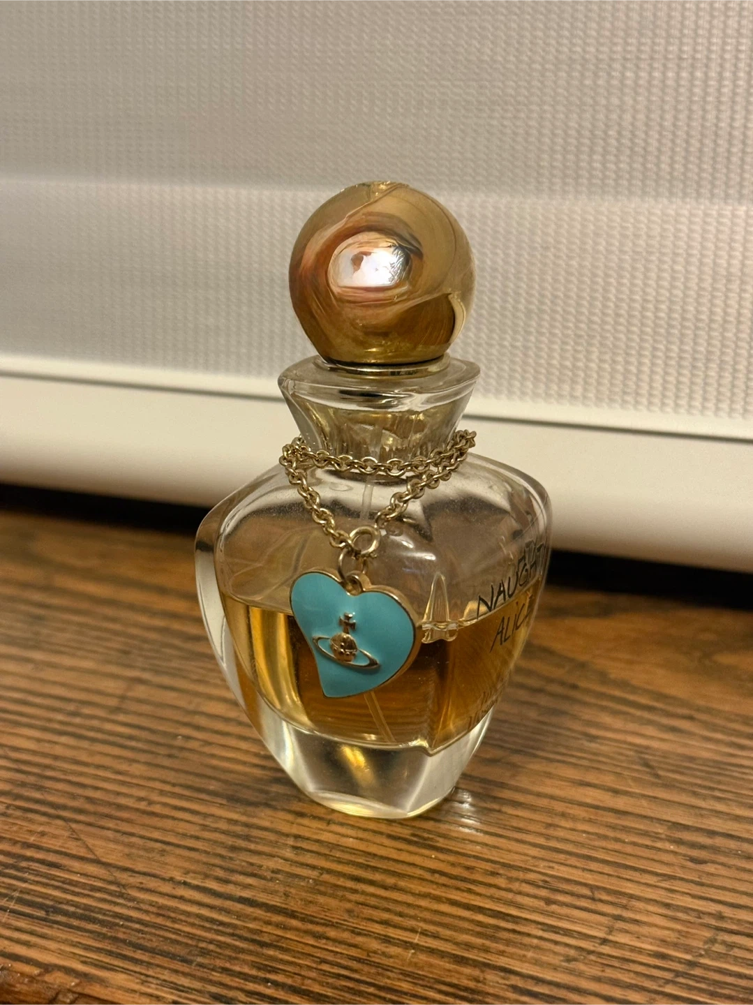Selling a bottle of Vivienne Westwood's Naughty Alice perfume! It's a lovely fragrance with a unique bottle design, complete with a bracelet with heart-shaped charm.