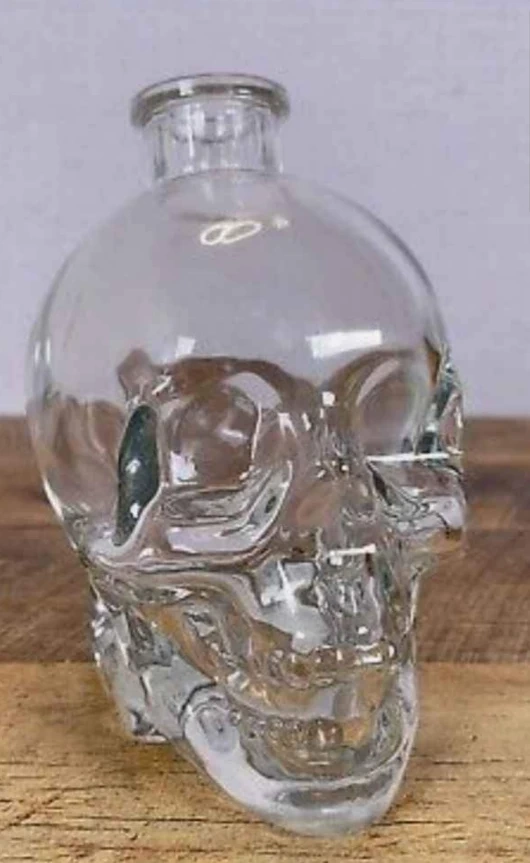 I have several clear empty skull-shaped glass bottle for sale! It's a unique piece that would make a fun addition to any collection or as a decorative item!! Asking $20 each!!