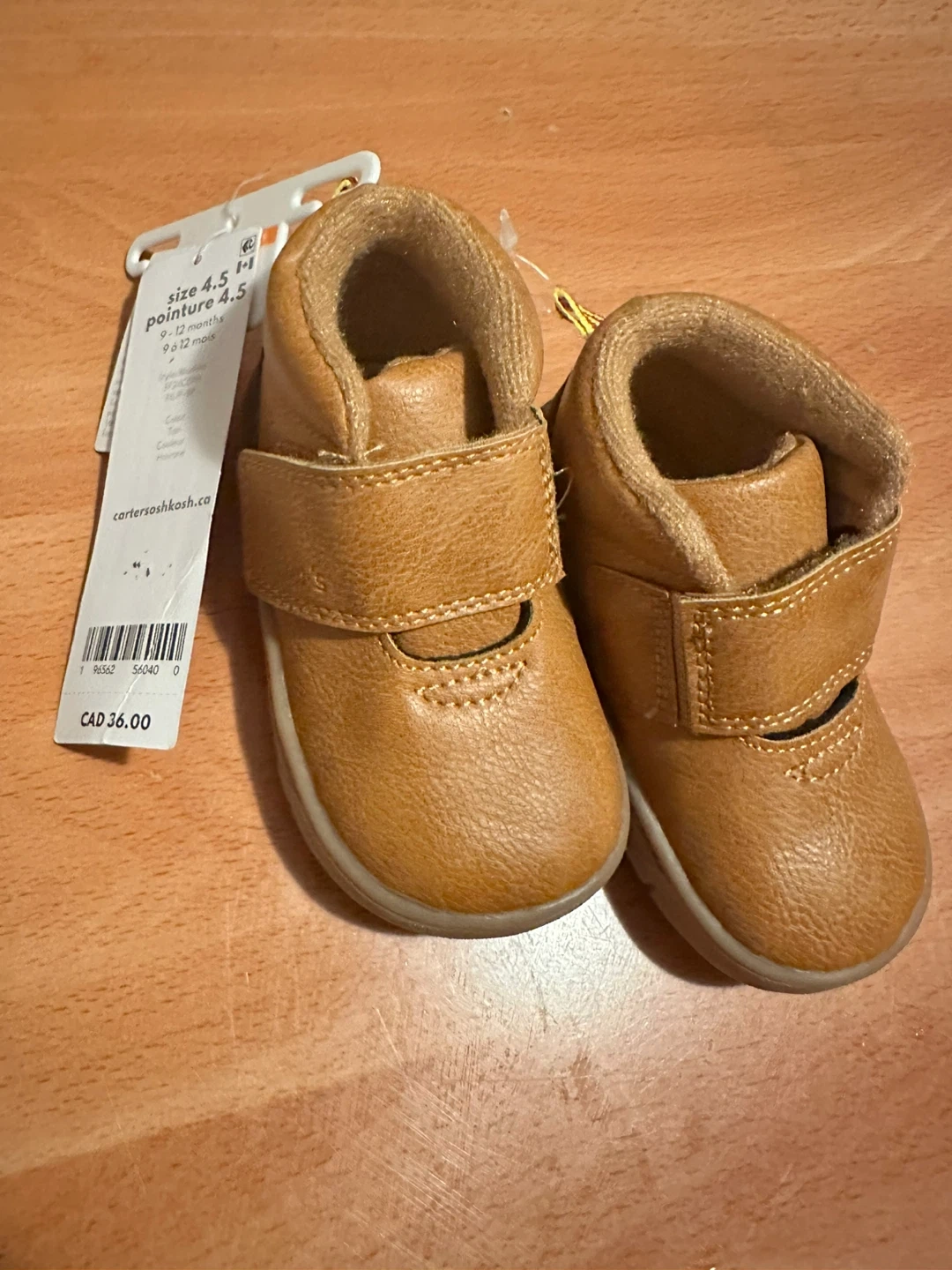 These adorable Carter's baby boots are brand new with tags! They are a size 4.5 and perfect for little ones transitioning from crawling to walking. Originally bought for $36.00, they're a steal!