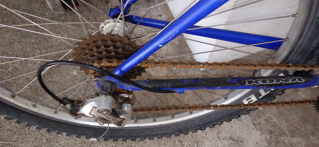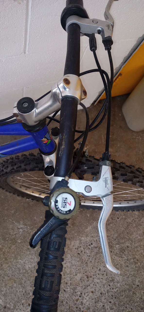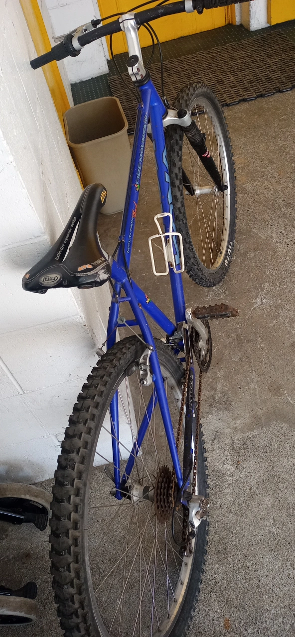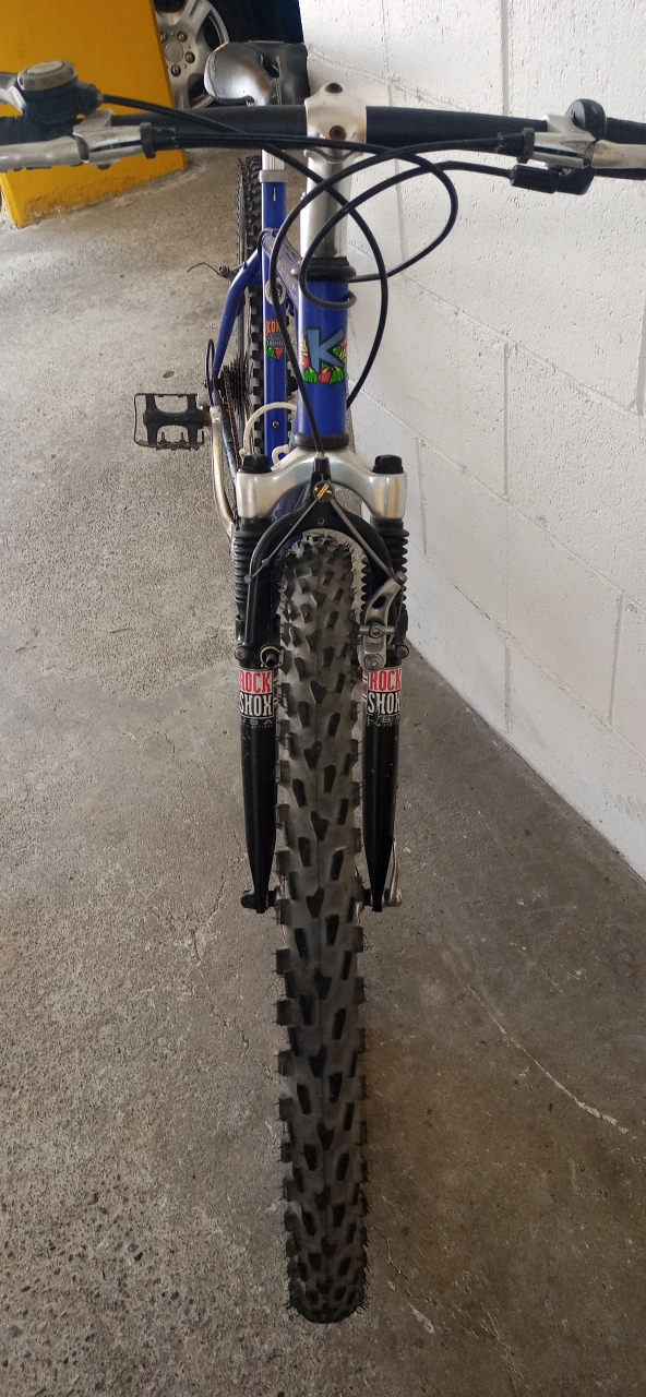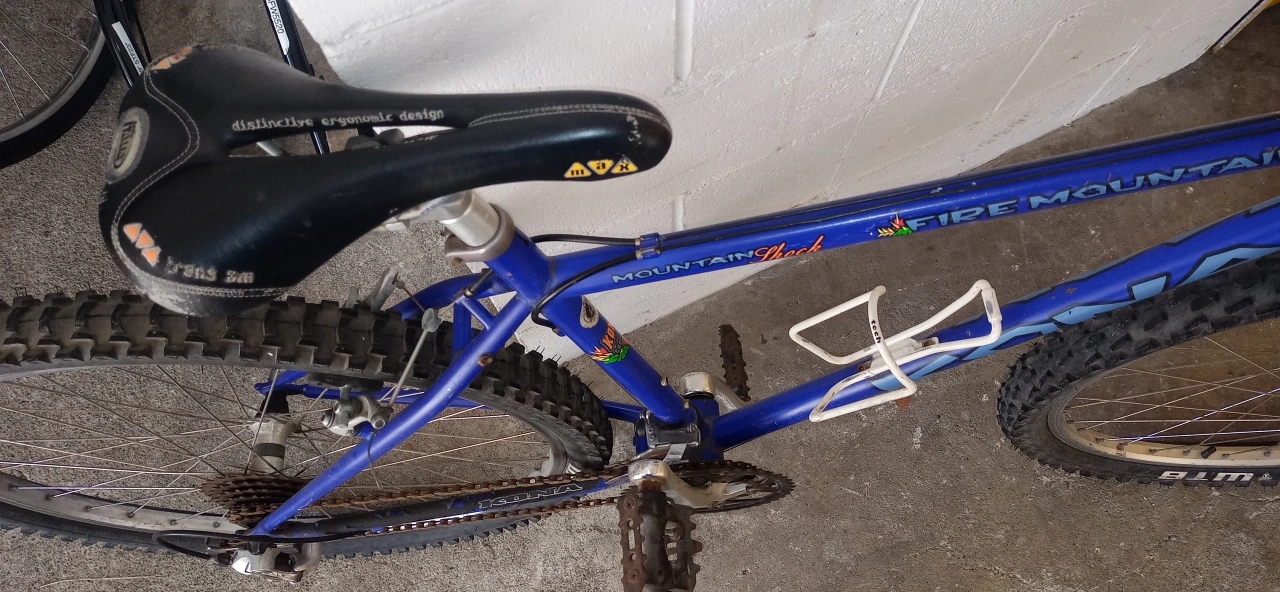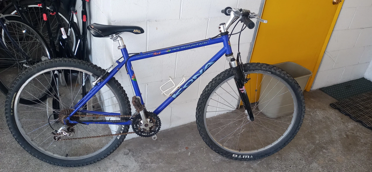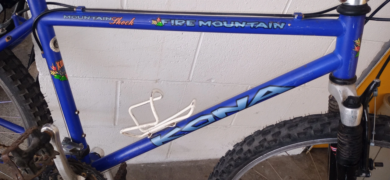 Selling a Kona Fire Mountain mountain bike in blue! Shimano parts. It's a great bike for hitting the trails or cruising around town. Features a distinctive ergonomic design saddle and Mountain Shock suspension. Needs a little TLC. Oil and lube. Been in storage for a while. Mid size for young adult.
