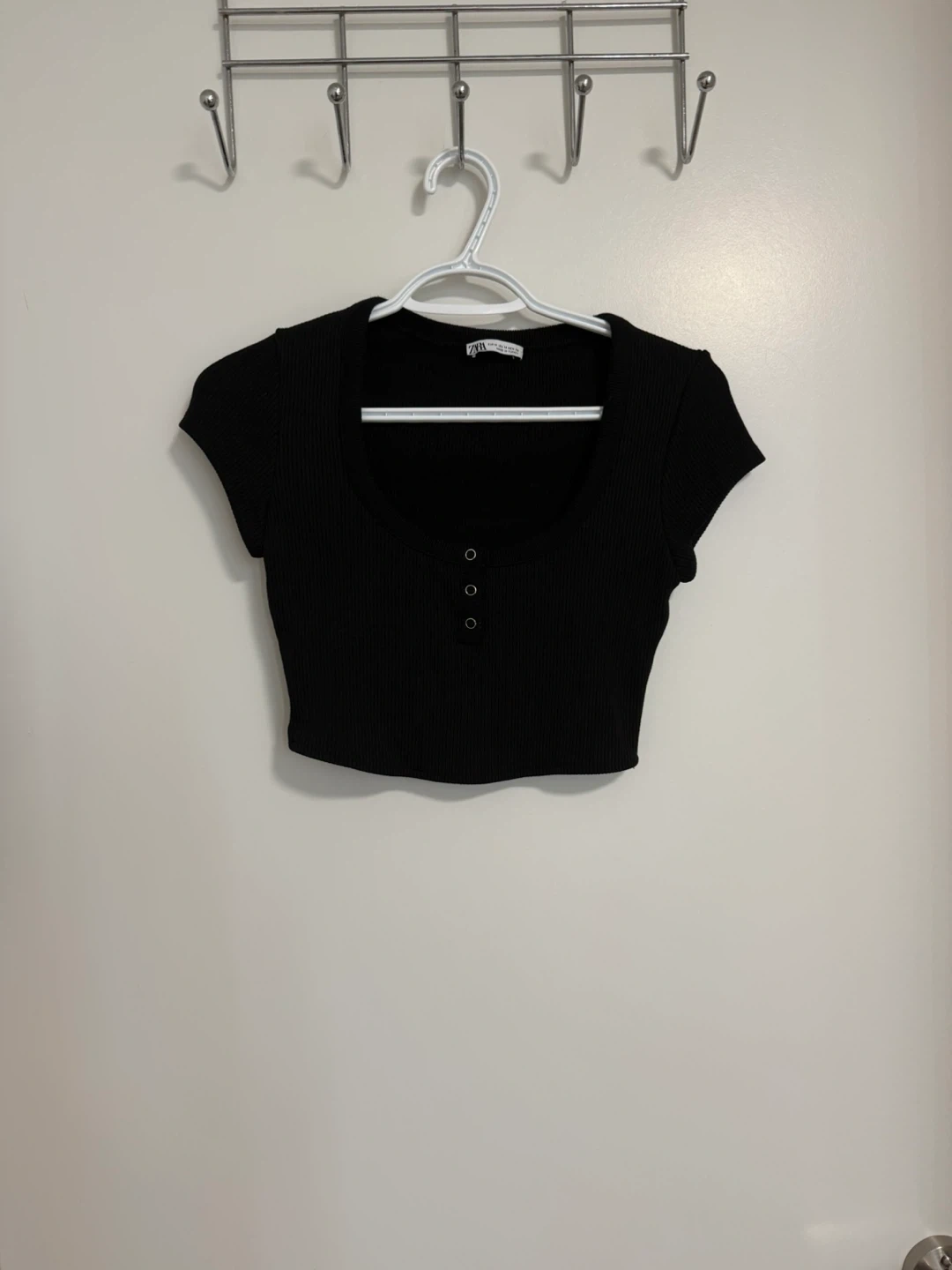 Selling a cute Zara black ribbed crop top! It's a size M and in great condition. Perfect for layering or wearing on its own