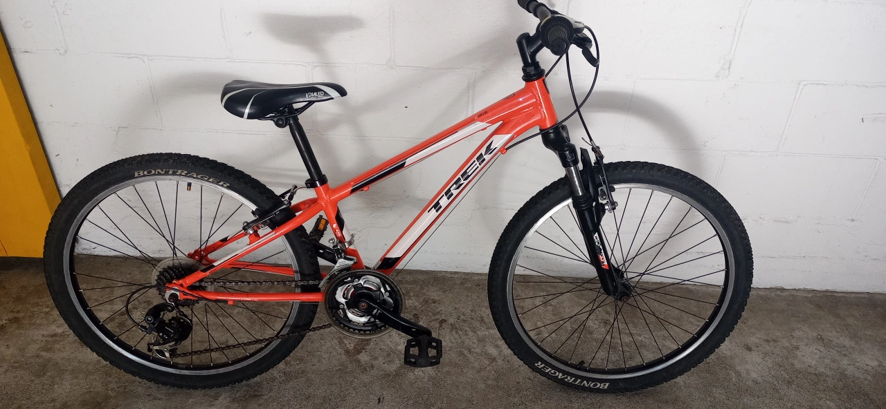 Ready to ride! like new.Selling a Trek Precaliber 24 kids' bike in orange. It's a great bike for young riders ready to explore! The bike features Shimano components. It's a trek, at a very low price! firm.