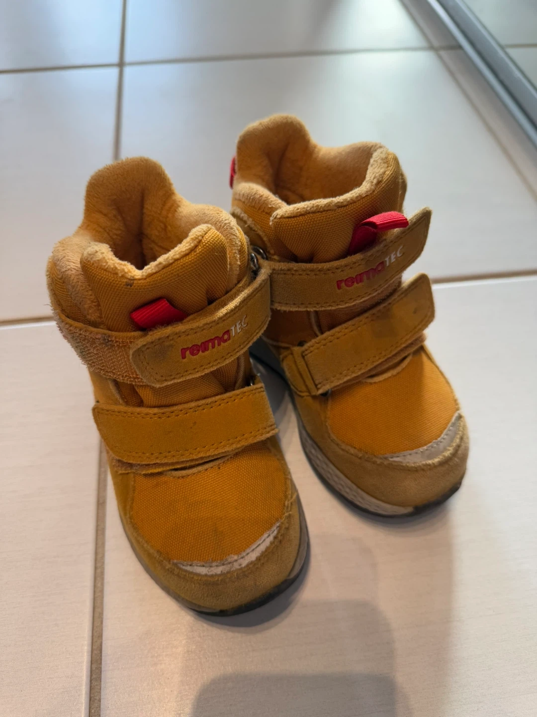 These Reima TEC toddler winter boots are perfect for keeping little feet warm and dry! They are a size 8.5 US (25 EU). They show some signs of wear but are still in good condition for outdoor play. The soles have good traction, and the velcro straps are easy for kids to manage
