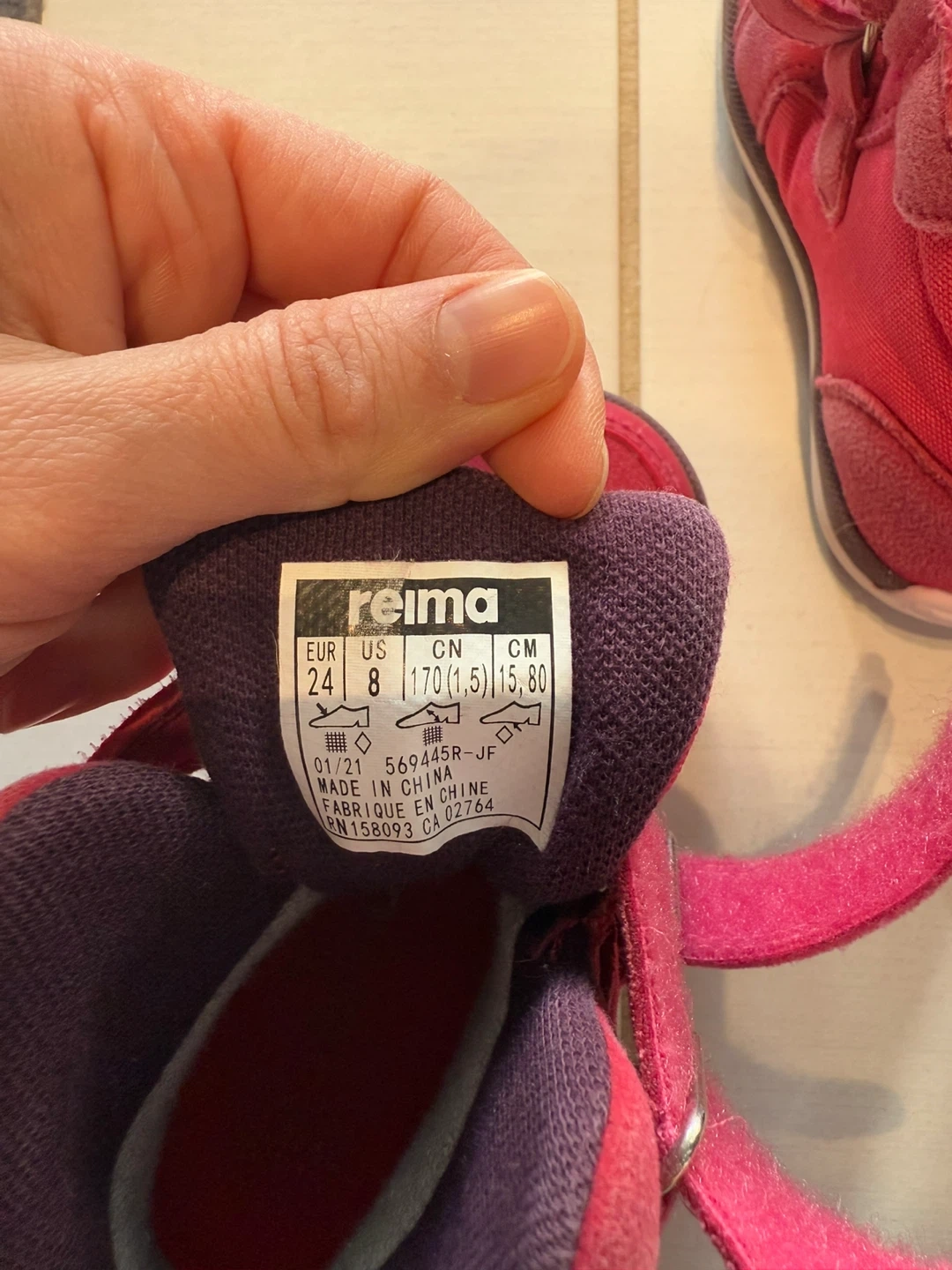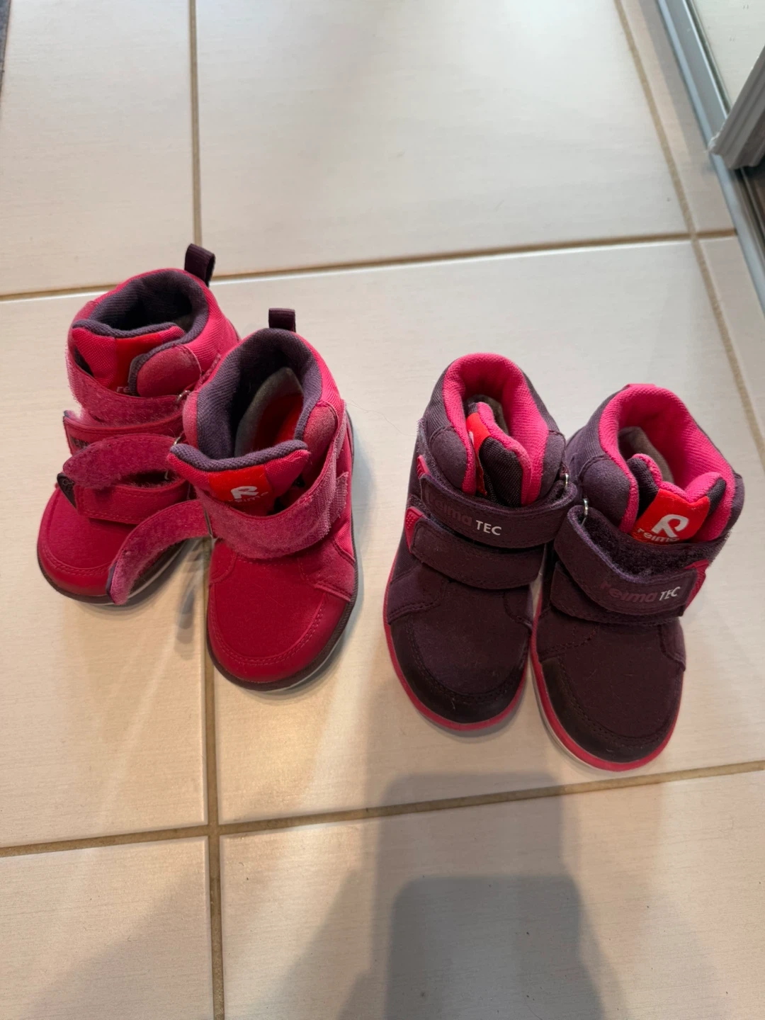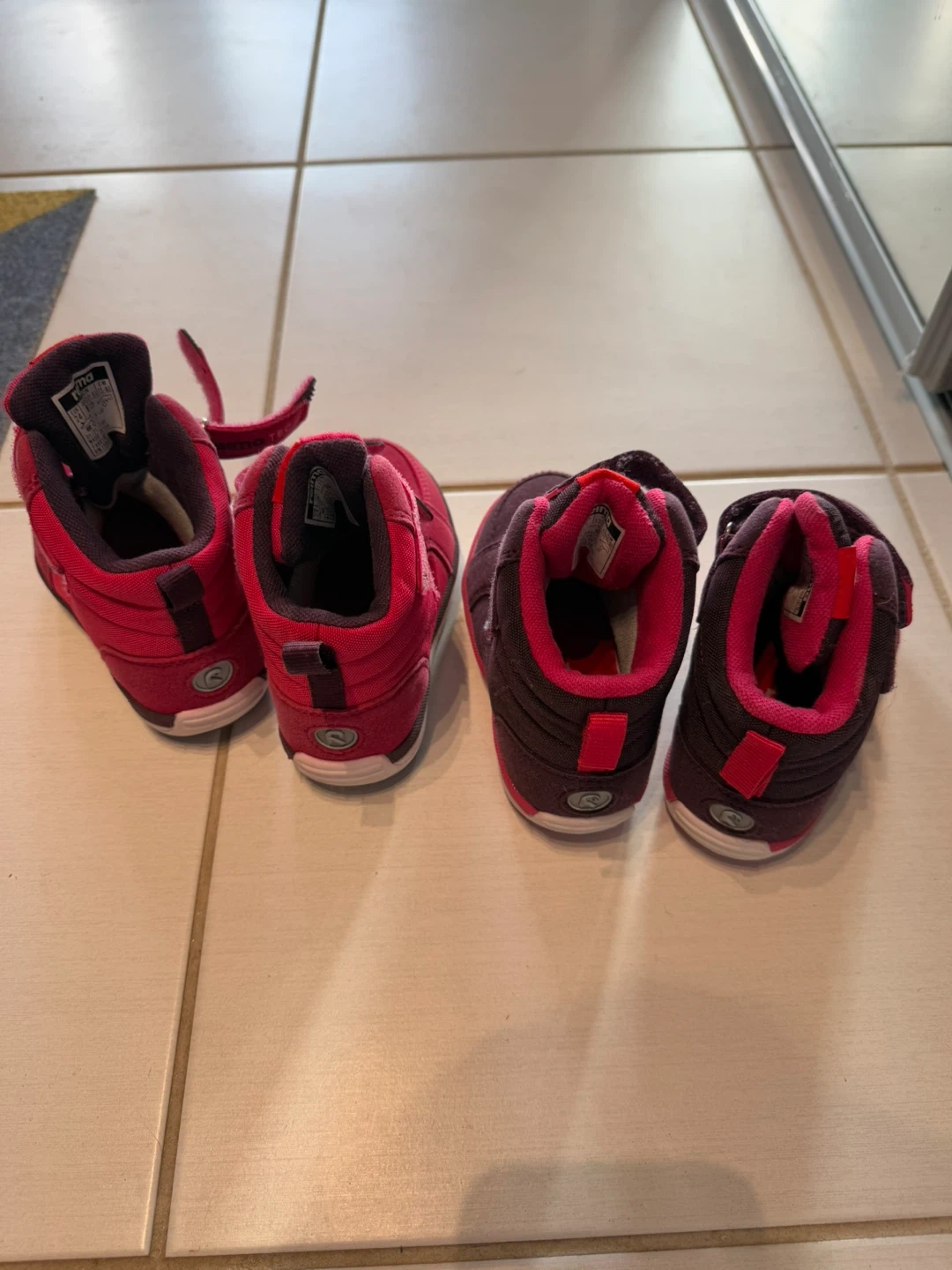 Two pairs of toddler Reima TEC shoes available! One pair is pink, the other is purple. Both are in US size 8. Great for keeping little feet warm and dry during outdoor adventures