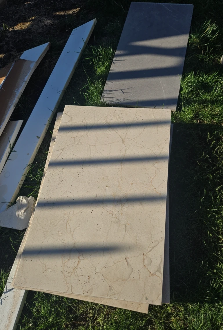 Selling MARMOREAL tiles in Crema Marfil colour! They are sized at 12" x 24". Great for any home renovation project.