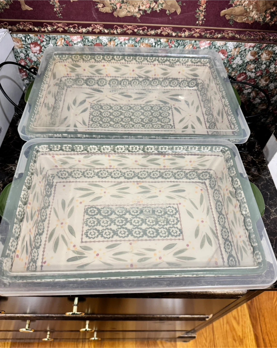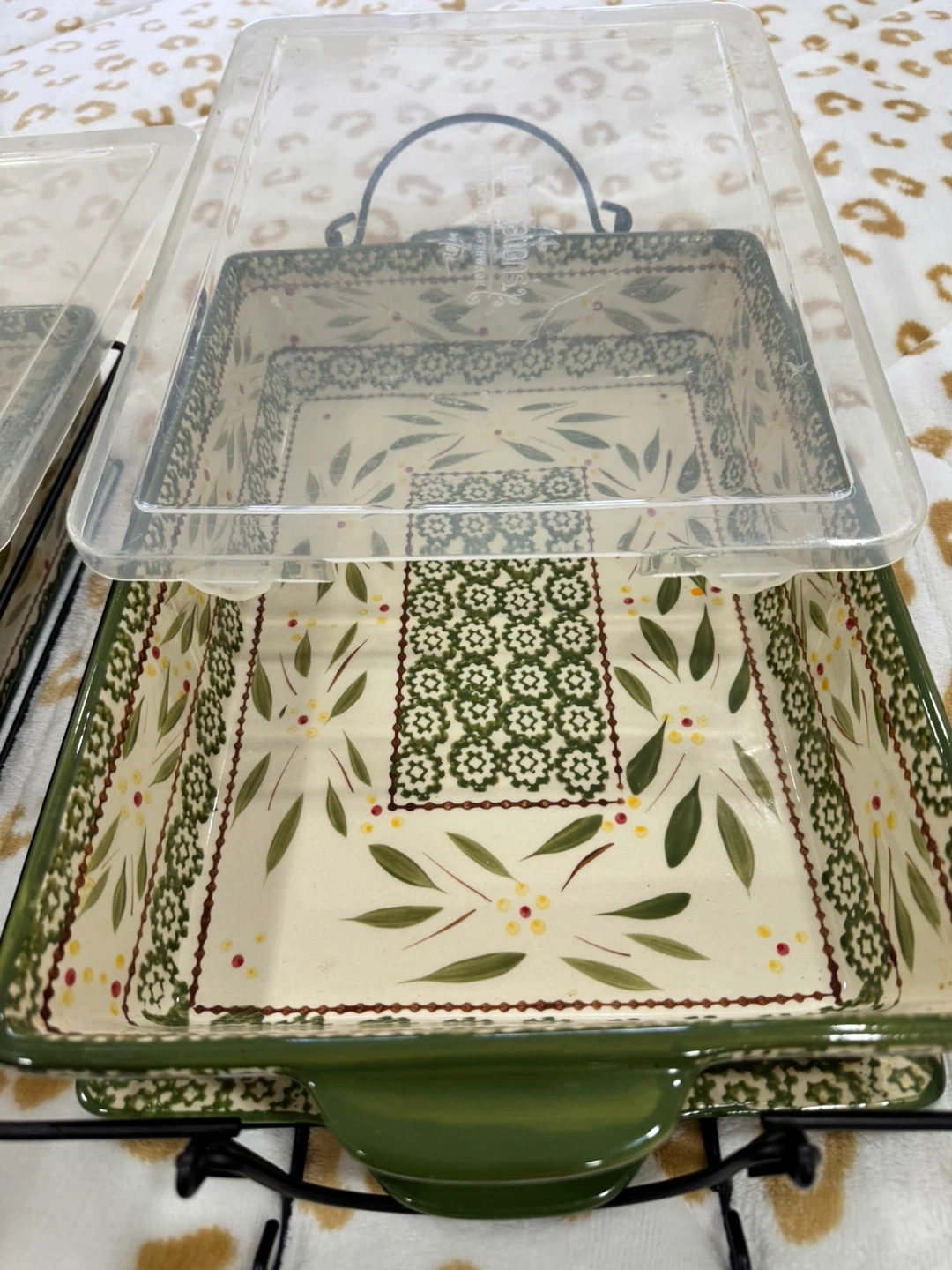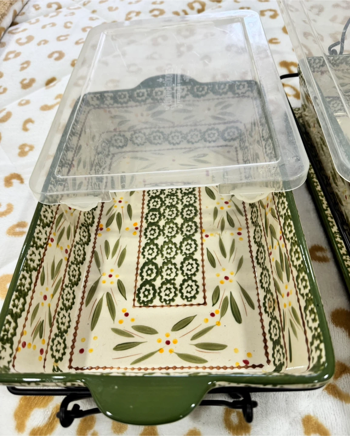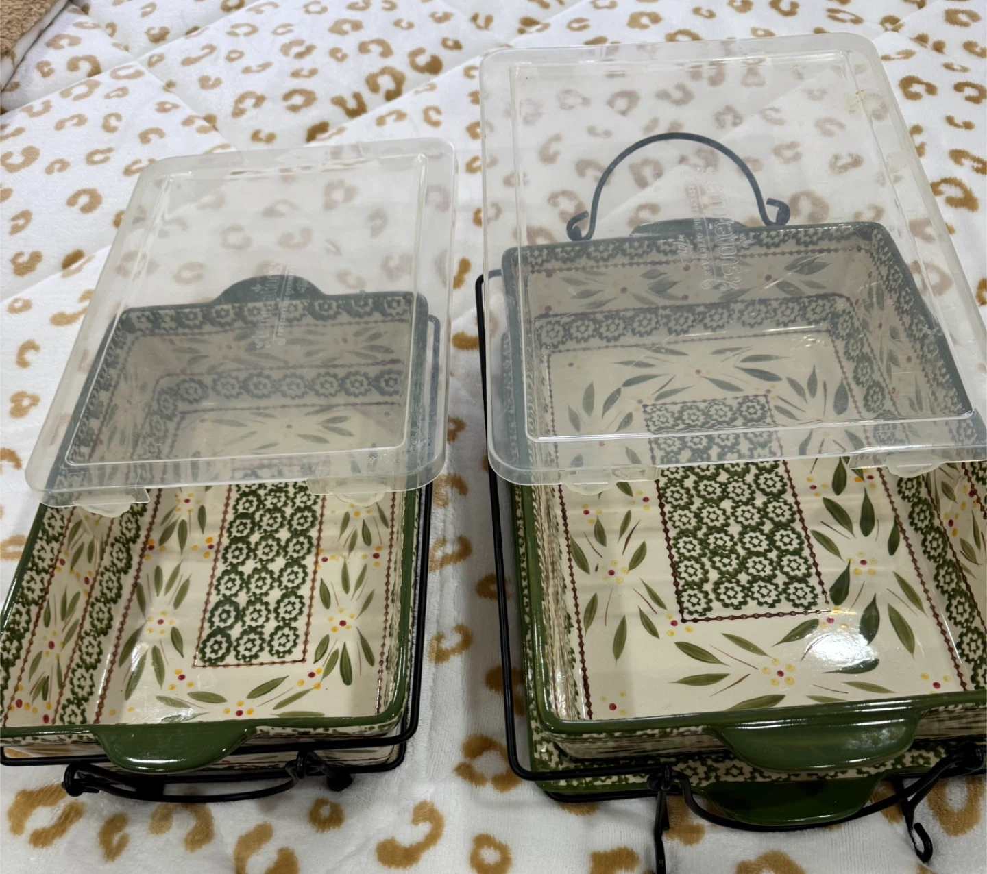 Selling a set of two baking dishes from The Pioneer Woman. They come with lids and metal racks. Perfect for casseroles or desserts!
