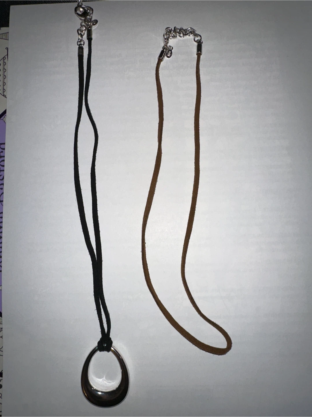 Selling a cute silver pendant necklace with a black cord. Can change the cord to brown as well. It's in great condition and ready to accessorize your outfits!