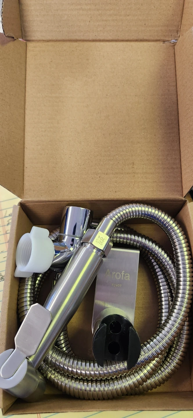 Selling a brand new Arofa bidet sprayer set, still in its original box! This set includes all the necessary components for easy installation and use. Get a cleaner and more hygienic bathroom experience with this quality bidet sprayer