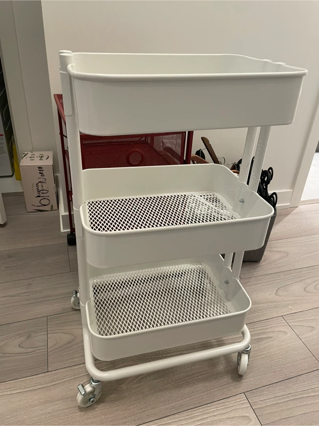 Selling a white IKEA Raskog utility cart. Must pick up by 20th night!