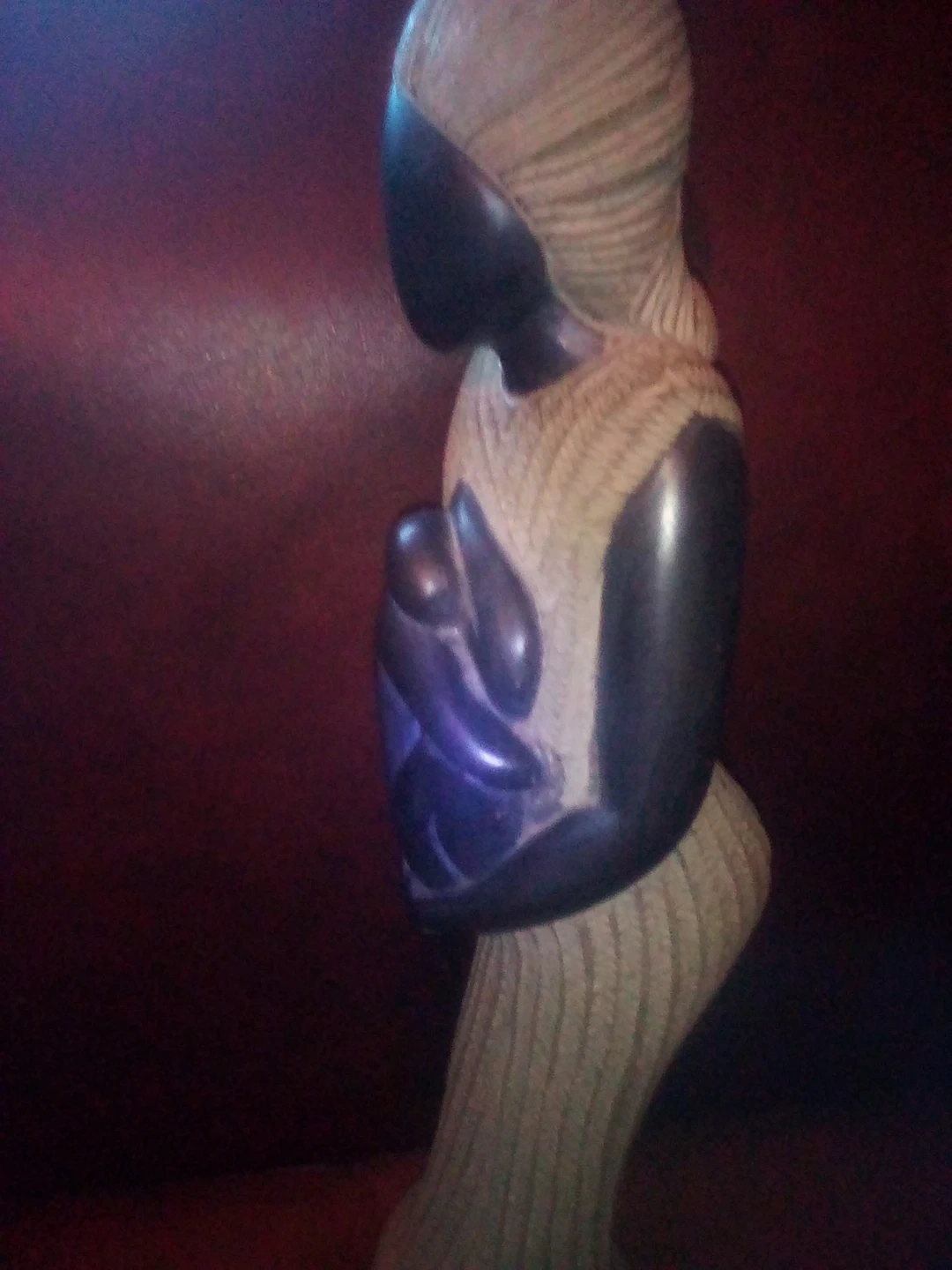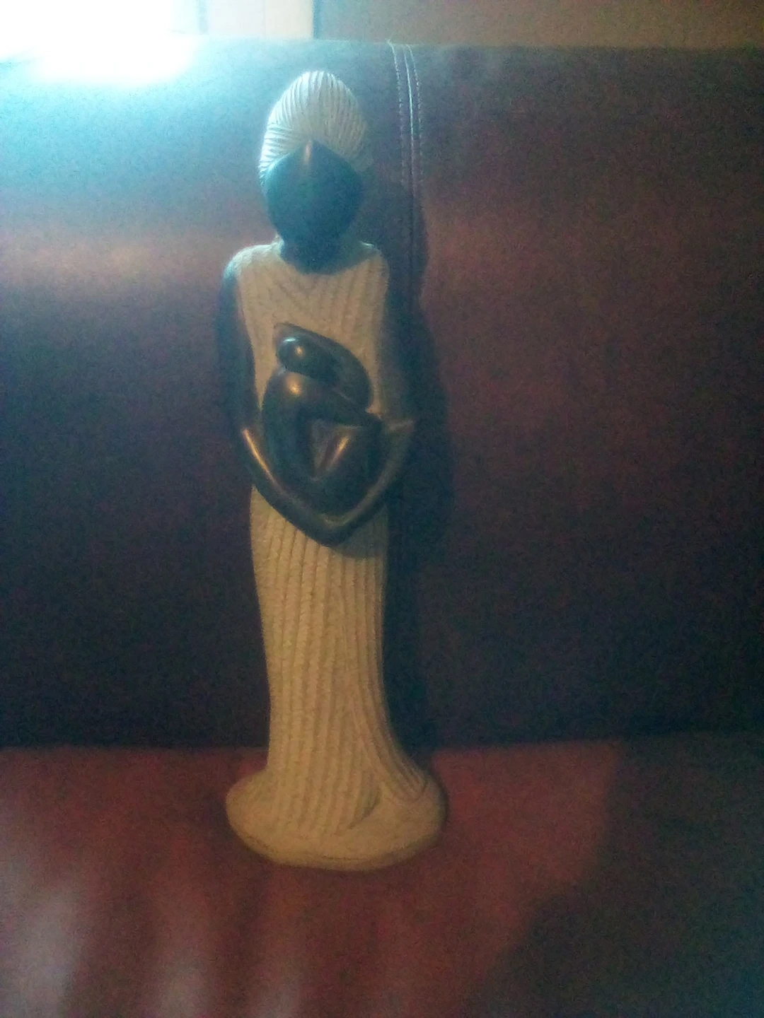 This is a beautiful sculpture of a woman holding a child. It is in excellent condition and would be a great addition to any home Hand sculpted from Hatti The sculpture has a bit of weight to it