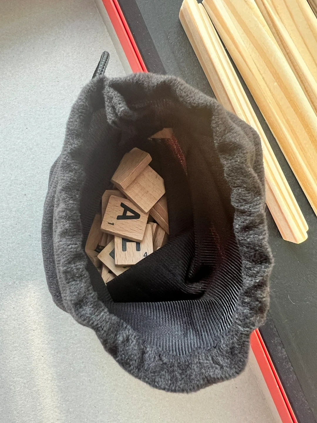-100 Wooden letter tiles (in drawstring bag).