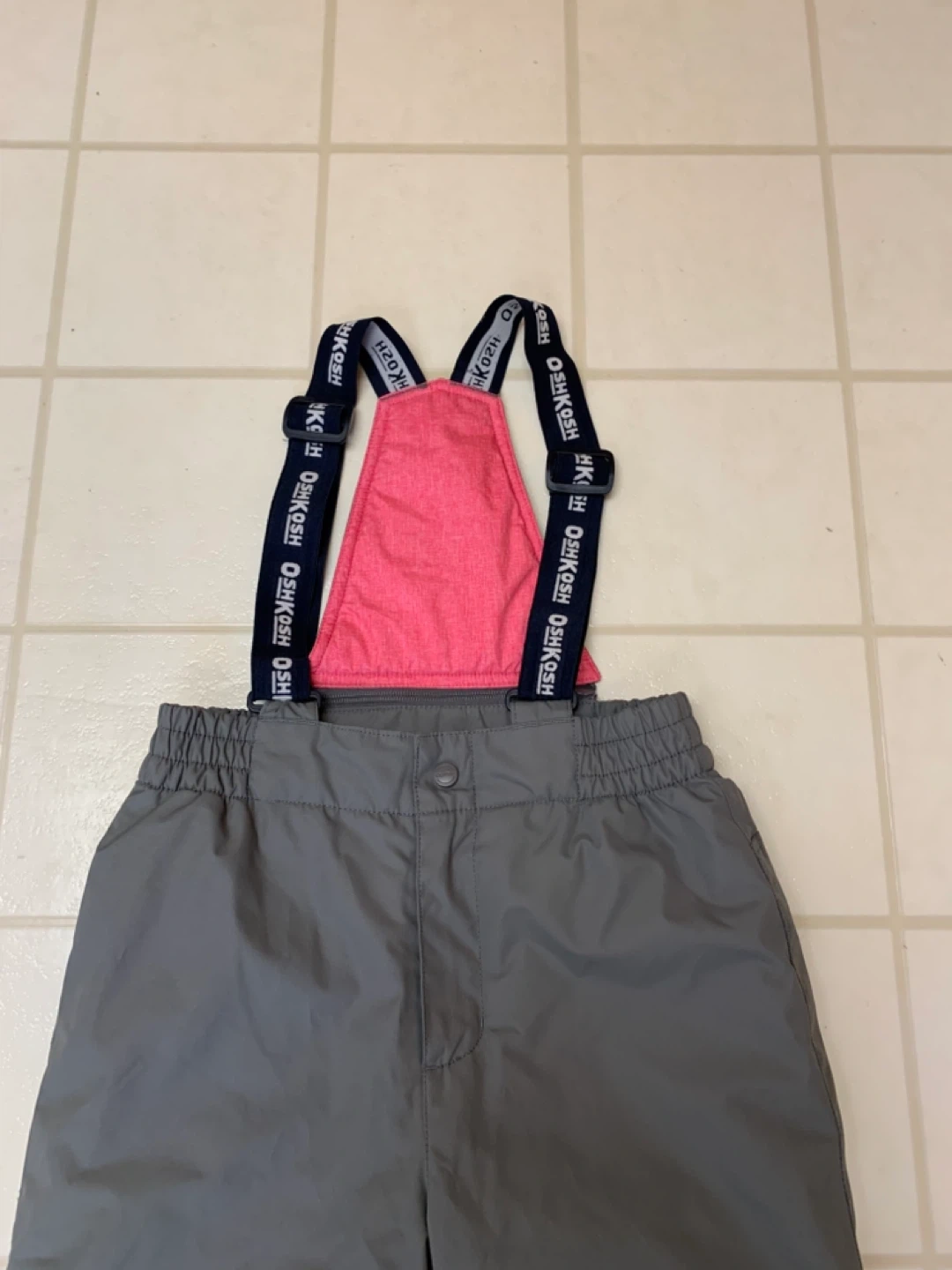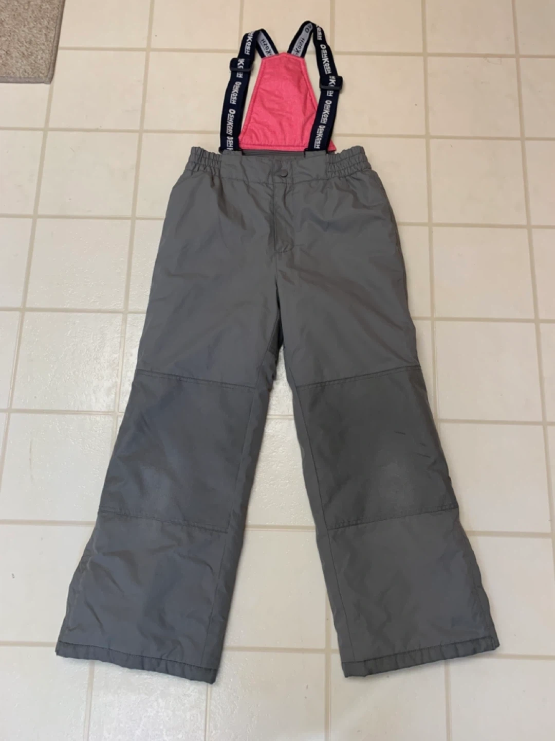Selling a pair of OshKosh B'Gosh snow pants in grey! They have adjustable suspenders and a comfortable elastic waistband. Perfect for keeping your little one warm and dry during winter activities. Size 10