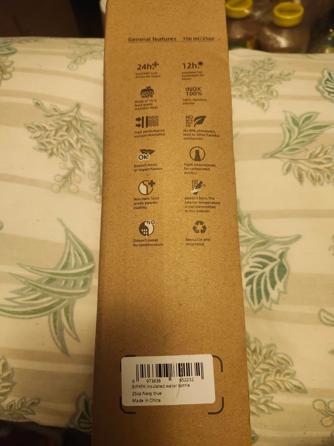 I'm selling a BJPKPK insulated water bottle in navy blue! It holds 25oz and has some great features: