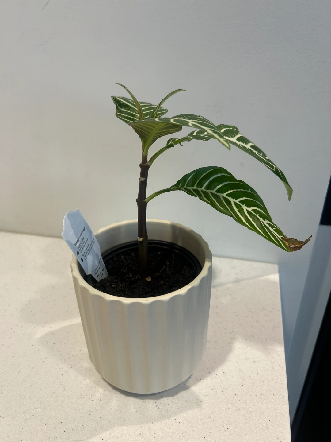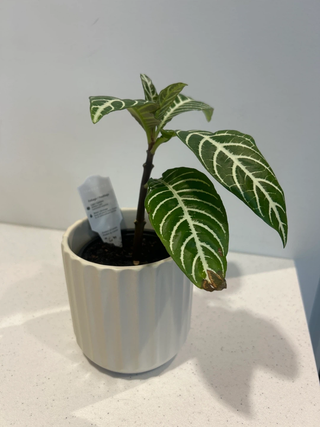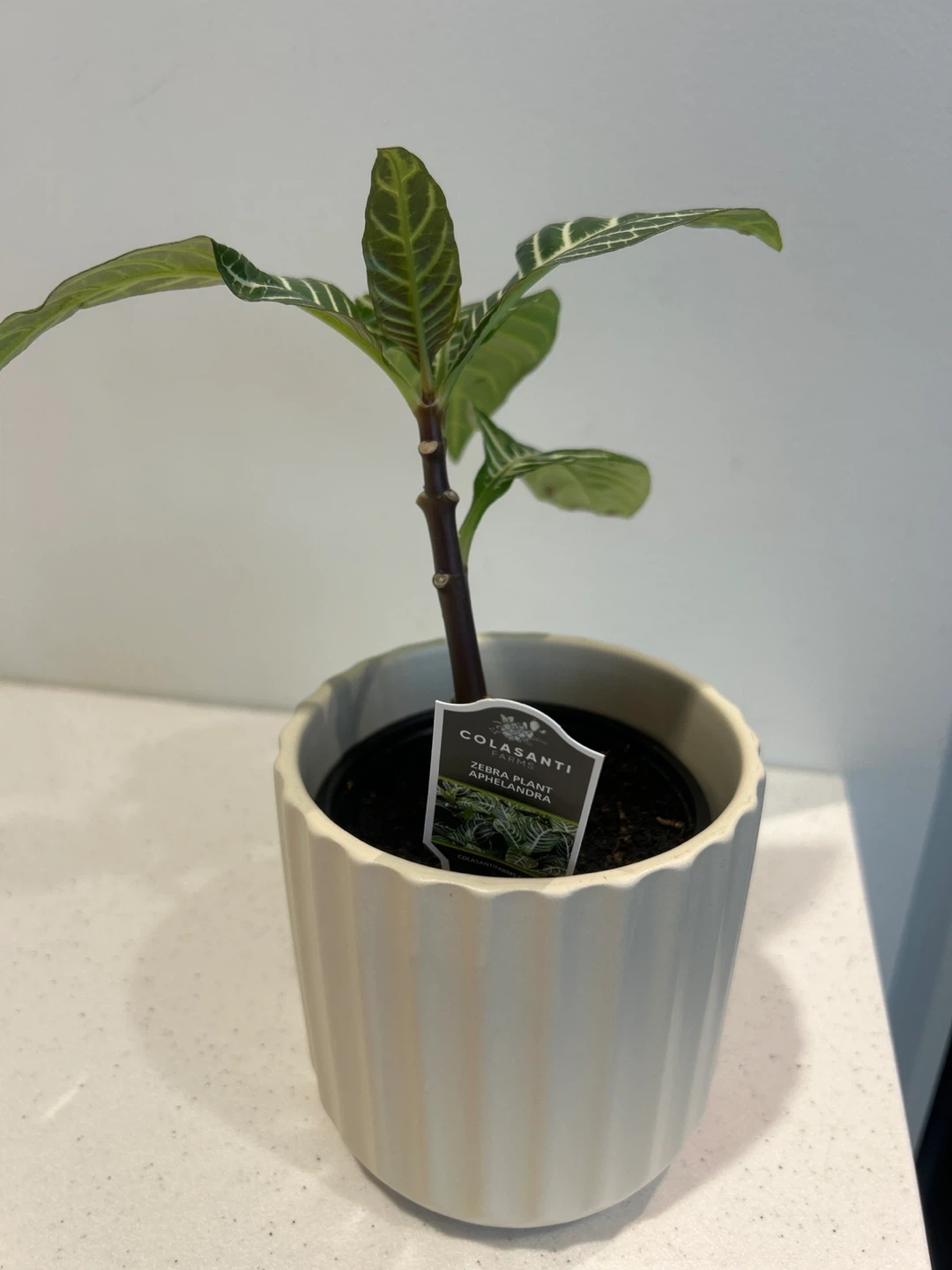 Selling a lovely Zebra Plant (Aphelandra) in a cute white pot! It's a beautiful addition to any indoor space and adds a touch of greenery to your home.