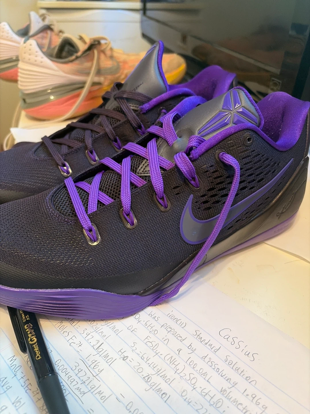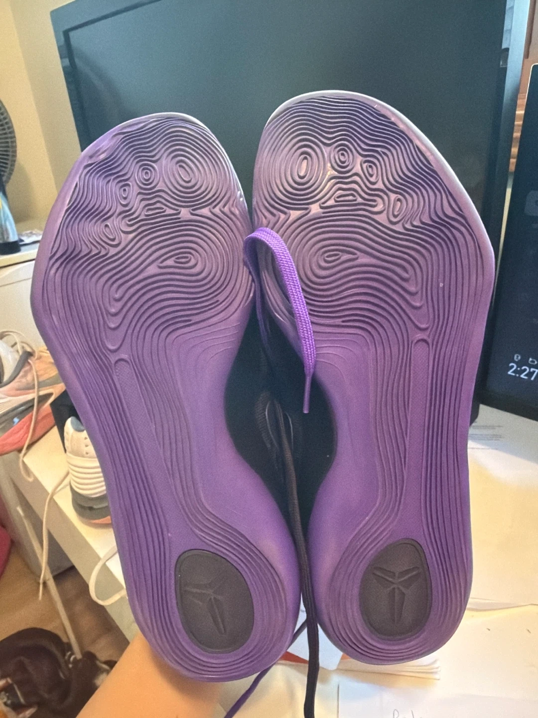 Selling a pair of Nike Kobe Mamba Rage basketball shoes in a cool purple and black colourway! These shoes are in great shape and ready for the court or just kicking around town. They feature the iconic Kobe logo and a comfortable design. Perfect for any basketball fan or sneaker enthusiast!