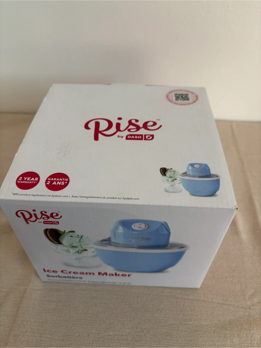 Selling a Dash Rise Ice Cream Maker, still in its original box! It's perfect for making delicious ice cream and sorbet at home. Get ready to enjoy homemade frozen treats with ease
