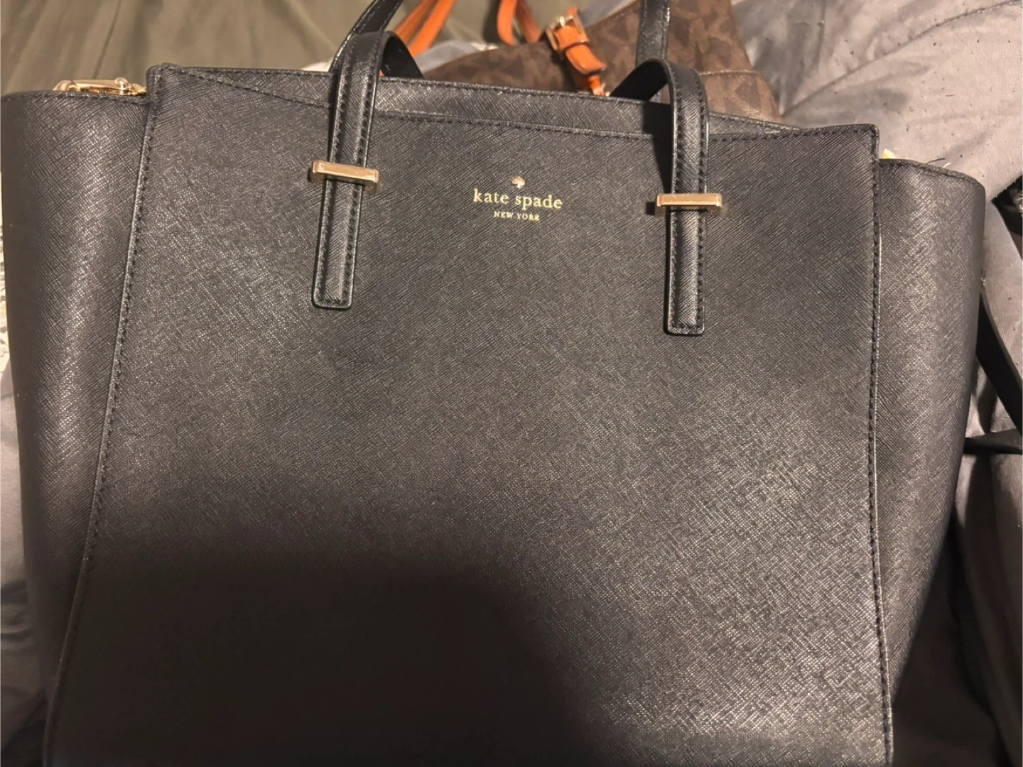 Selling a Kate Spade Serena Saffiano Leather Laptop Bag in black! This stylish and functional bag is perfect for carrying your laptop and other essentials. Retails for $398 approximately 15”