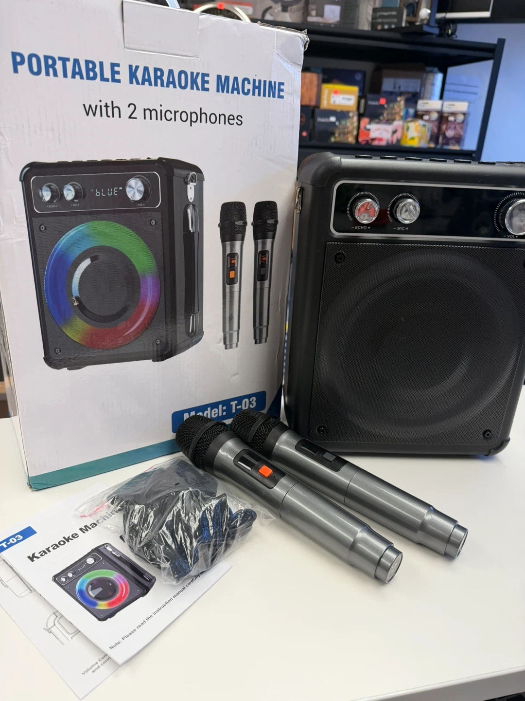 Portable Karaoke Machine Model T-03 with 2 Mics