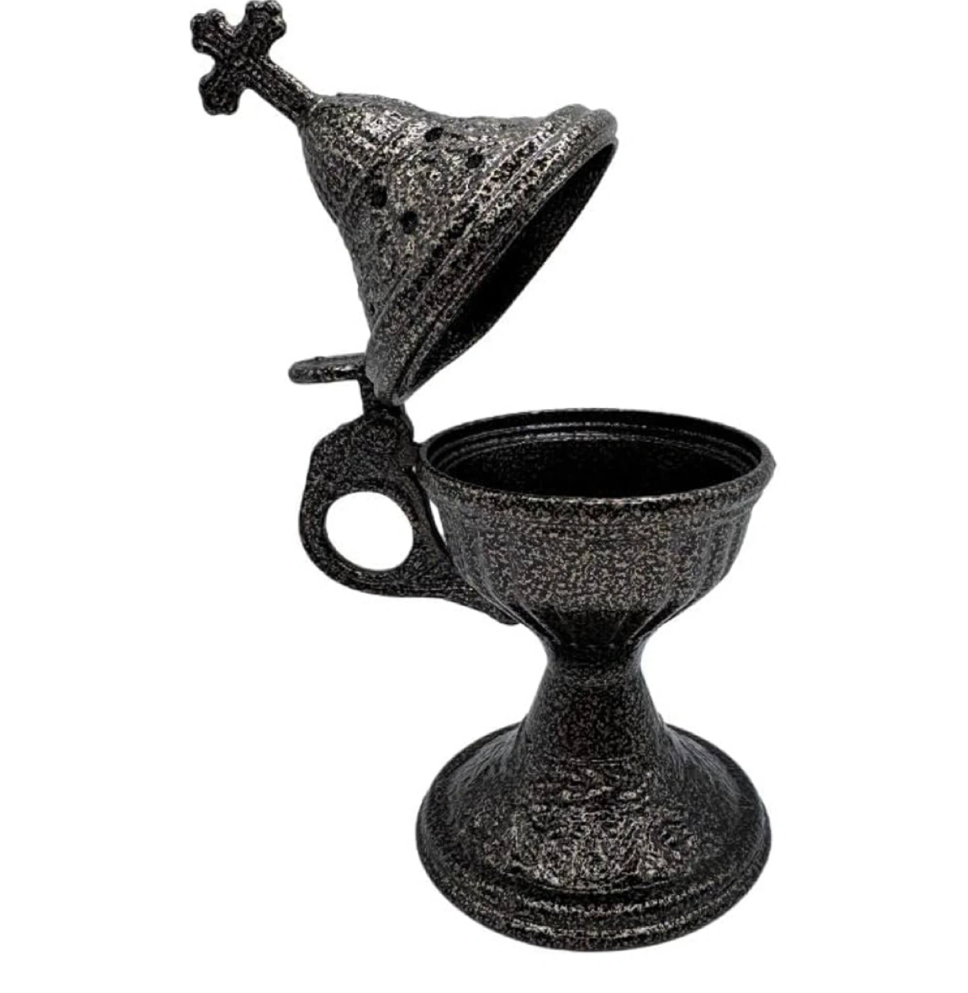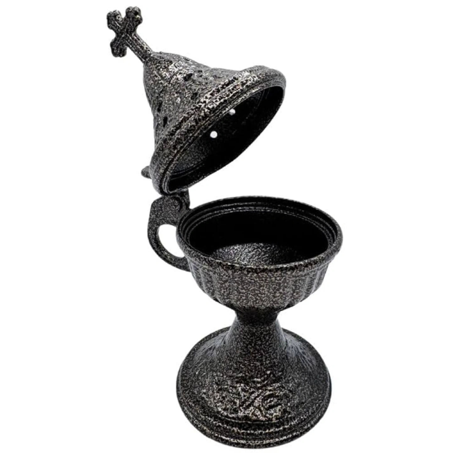 Authentic Livanistiri incense burner used in Greek Orthodox rituals — a sacred item designed for reverent home or church use.