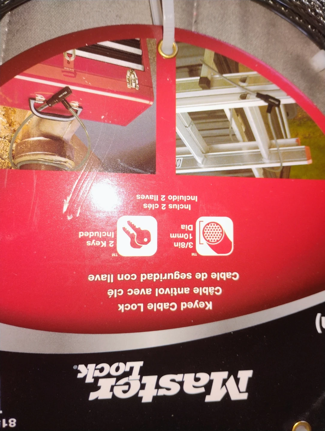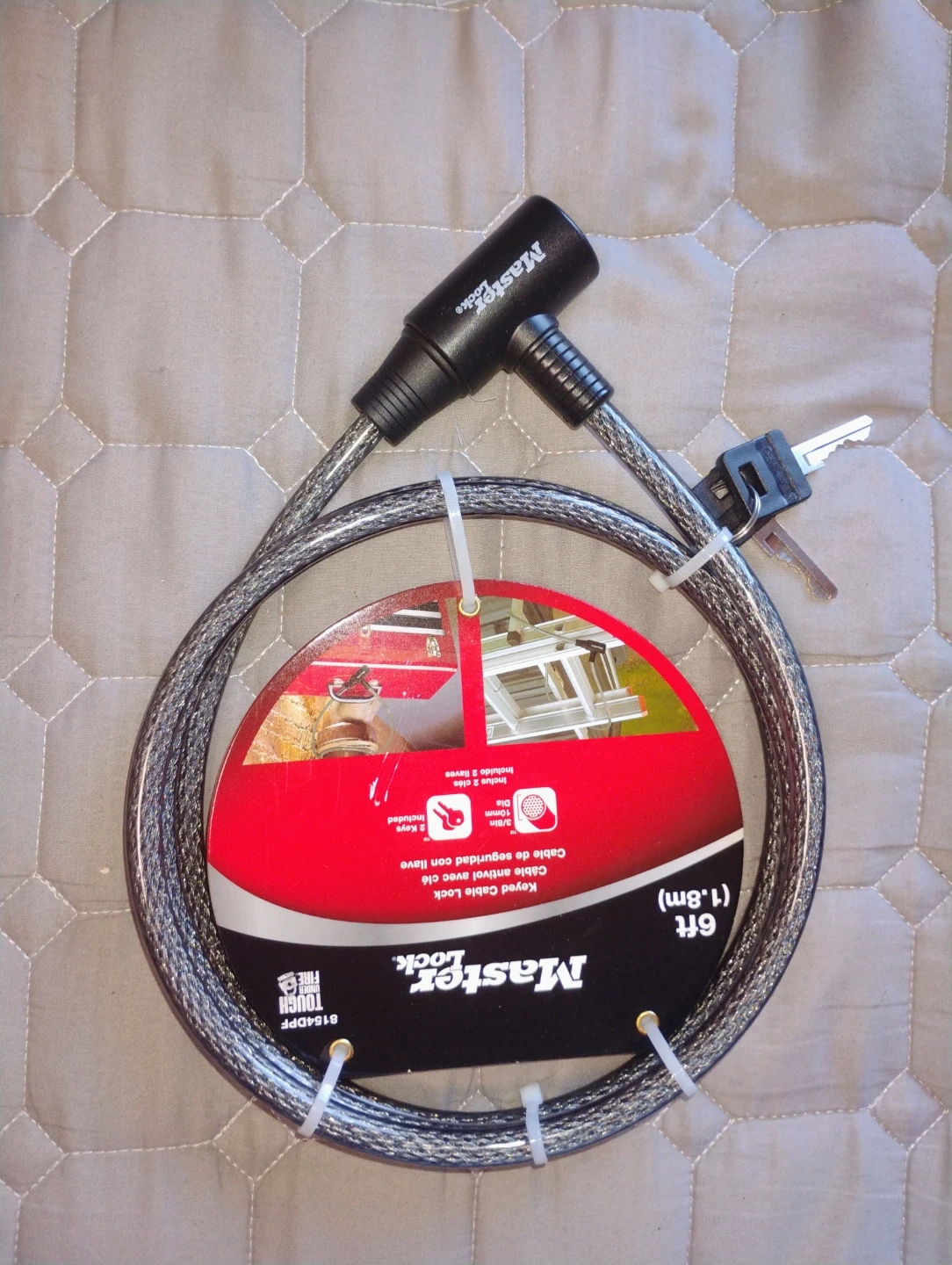Selling a Master Lock Keyed Cable Lock, perfect for securing your belongings. It's 6ft (1.8m) long and comes with 2 keys included. Great for bikes, ladders, toolboxes, and more