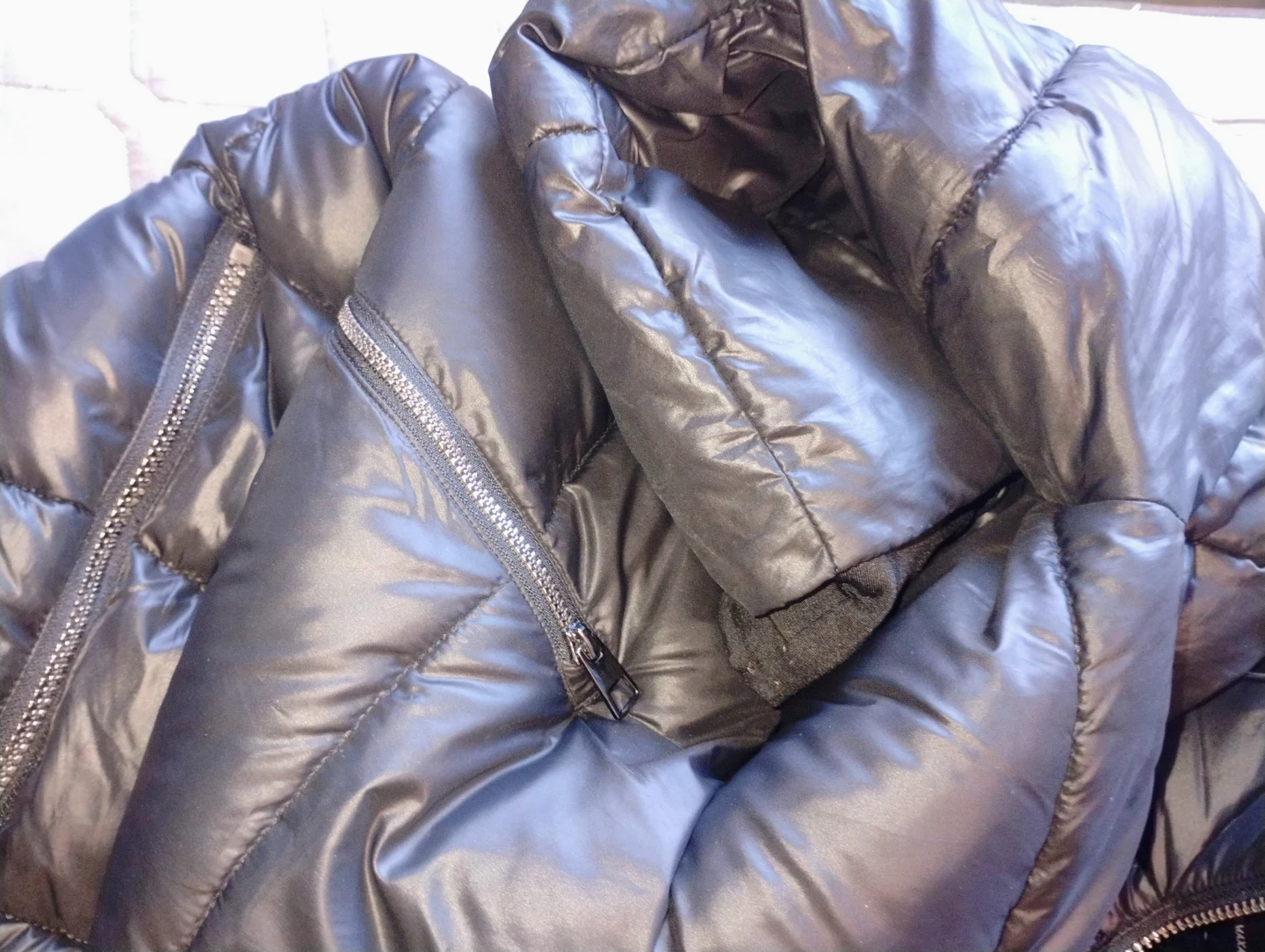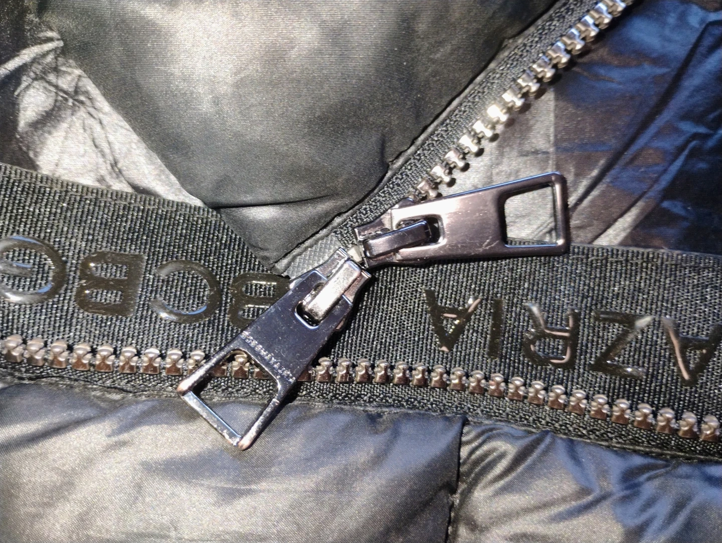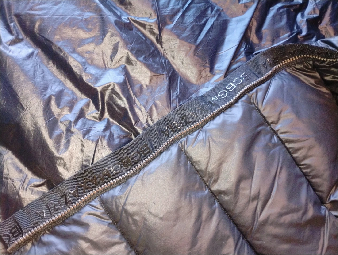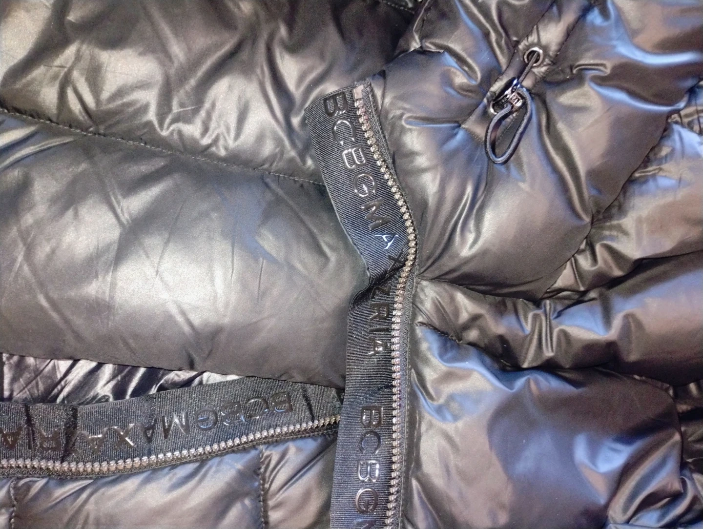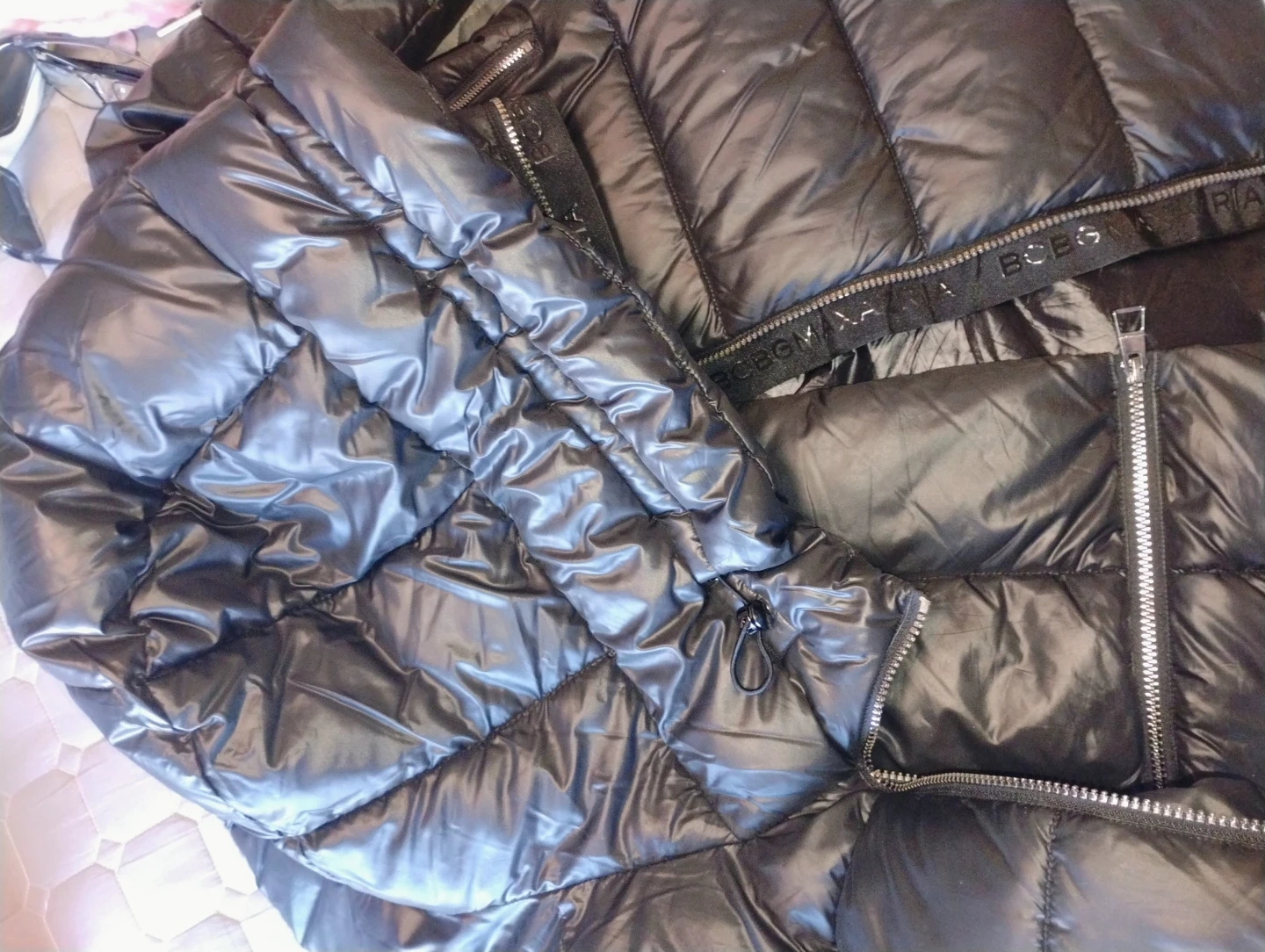 Here's a stylish black puffer coat from BCBGMAXAZRIA! It's made with a shell of 100% polyester and a lining of 100% nylon, ensuring warmth and comfort during those chilly days