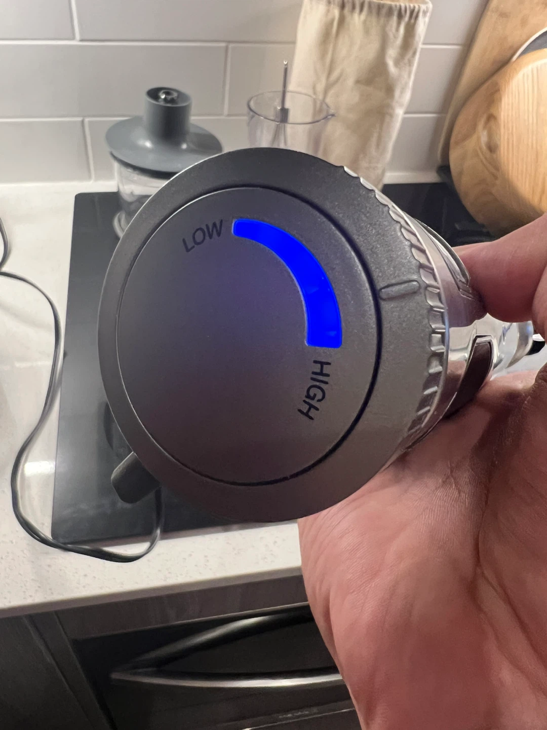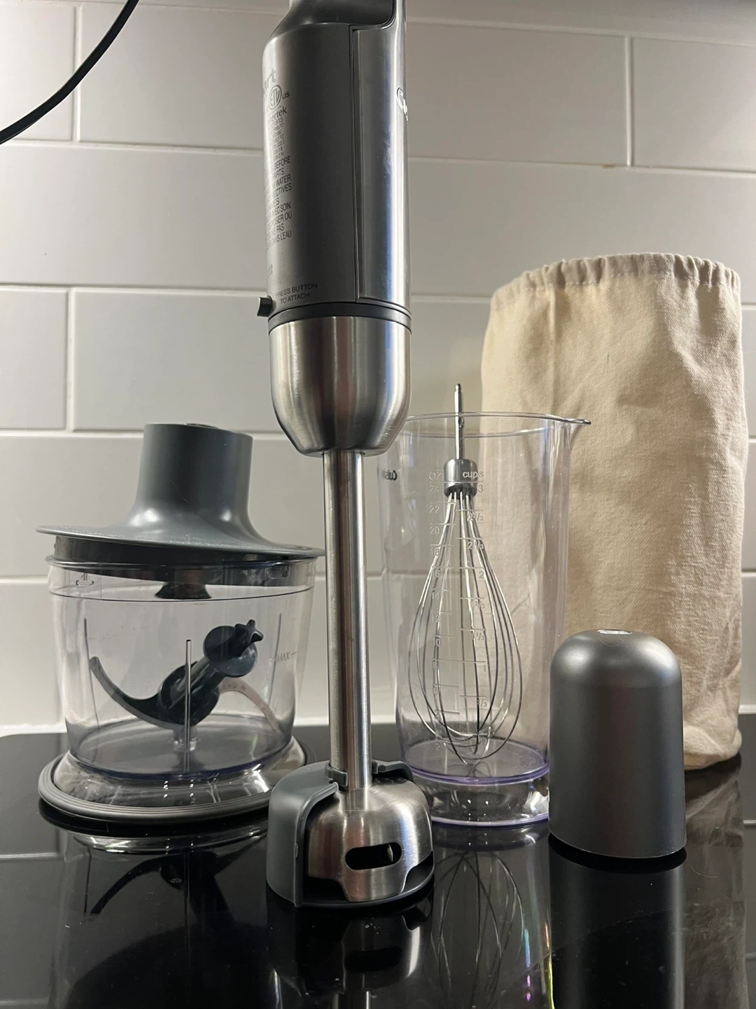 • Blending Shaft: Long stainless steel arm (great for soups and smoothies directly in the pot).
